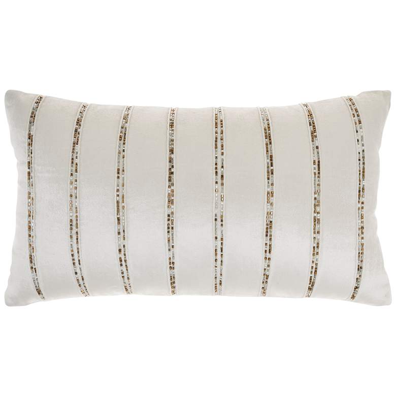 Sofia Ivory Beaded Stripes 21" x 12" Throw Pillow