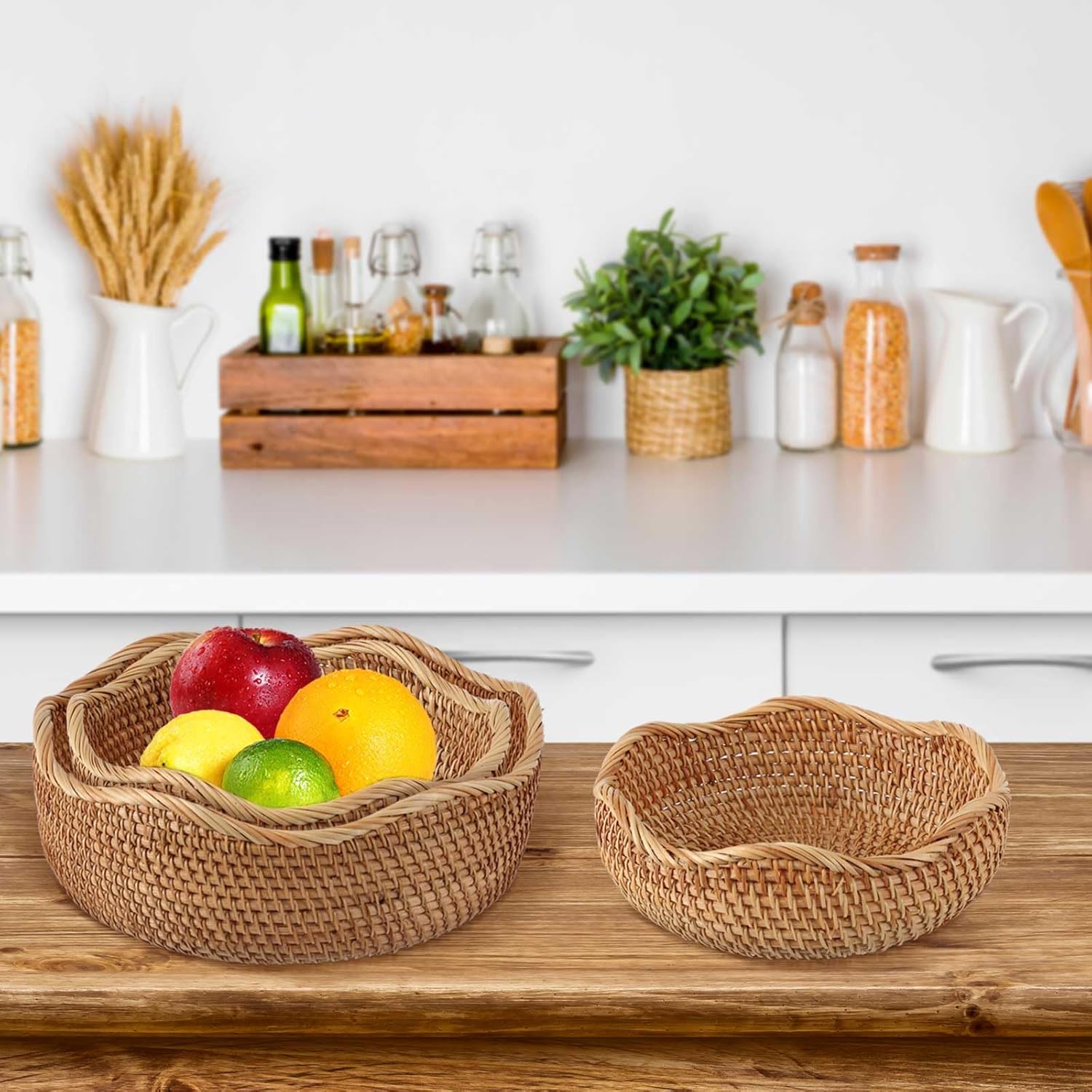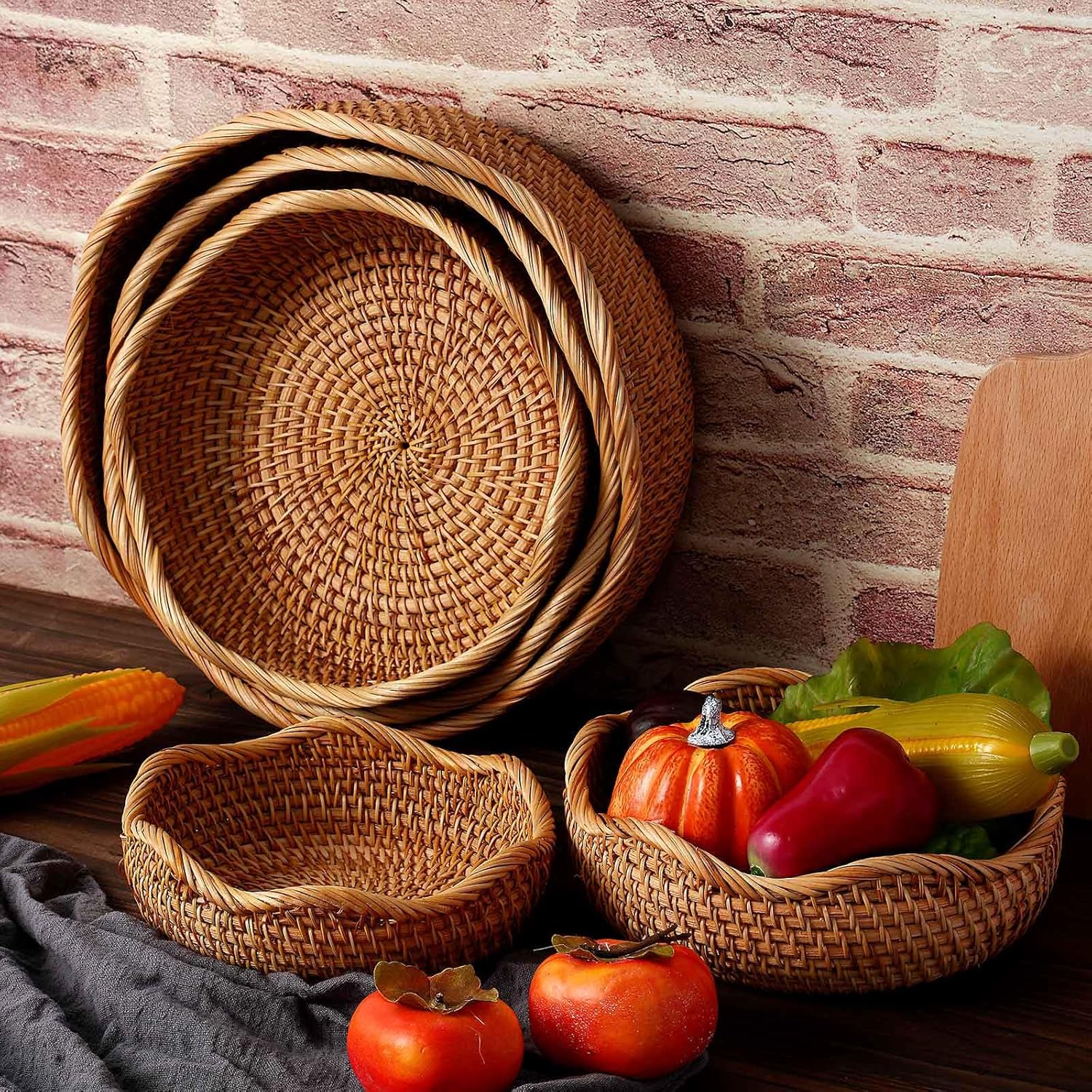 - Multi Purpose Rattan Basket Set: our package comes with 5 rattan fruit baskets of varied sizes, ensuring you have the suitable basket for any use; Embrace the beauty and functionality of rattan in your space with our Rattan round fruit basket set