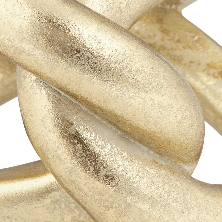 Modern living spaces delight in the decadent charm of this contemporary chain sculpture by Studio 55D. Crafted of shiny gold leaf finish resin, it delivers a radiant quality and eye-catching look. Hand-painted and designed with ultimate artistic flair, this chain sculpture becomes a fast favorite.