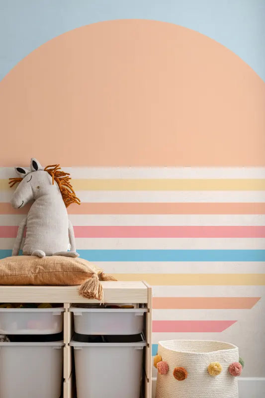 A mural is a wallpaper printed in strips that all fit together to create one large image or design, typically on one wall. Murals are custom-fit to any wall size.