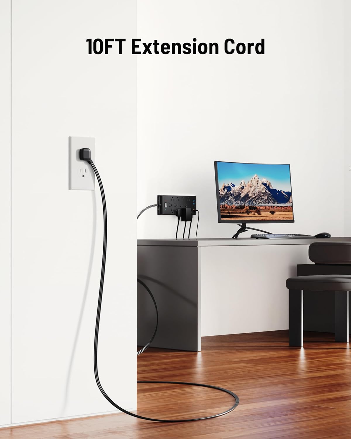 - 【10FT Long Extension Cord】 Extends power from a fixed wall outlet to a longer distance.