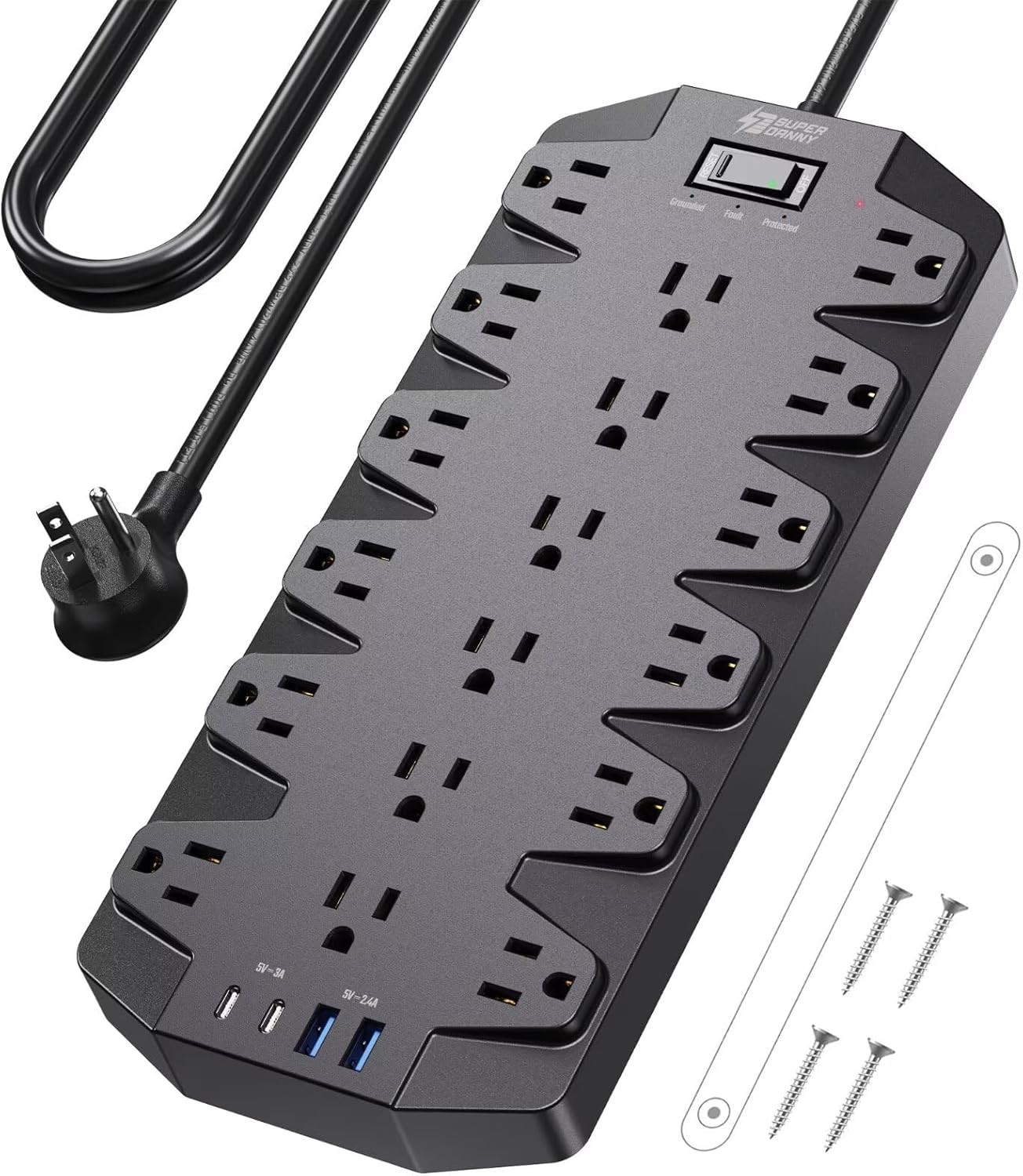 Surge Protector Power Strip, SUPERDANNY 18 AC Outlets with 4 USB Ports