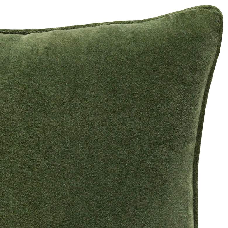 Retro inspiration replicates a classic hue and simple yet elegant design, offering a perfect look for transitional spaces. This square decorative throw pillow from the Safflower collection by Surya revisits the iconic plush feel of pure cotton fabric with a velvety feel and a solid grass green color tone. A zipper closure creates easy access to a down insert for quick cleaning. Piping details add a defining element.