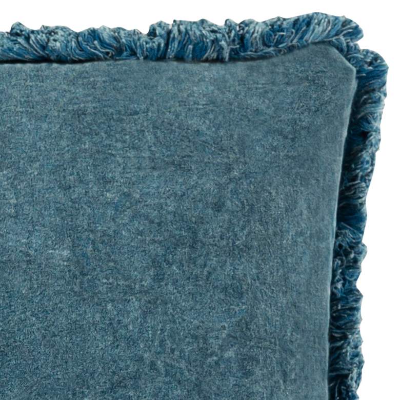 A soft-to-the-touch texture brings elegance and style to any space. This square decorative pillow from the Washed Cotton Velvet collection by Surya features a lush solid denim tone pure cotton cover, and a delightful fringe trim on each side. A down insert is easily accessed through its zipper closure. Choose this pillow to highlight a colorful or monotone sofa, chair, or bed.