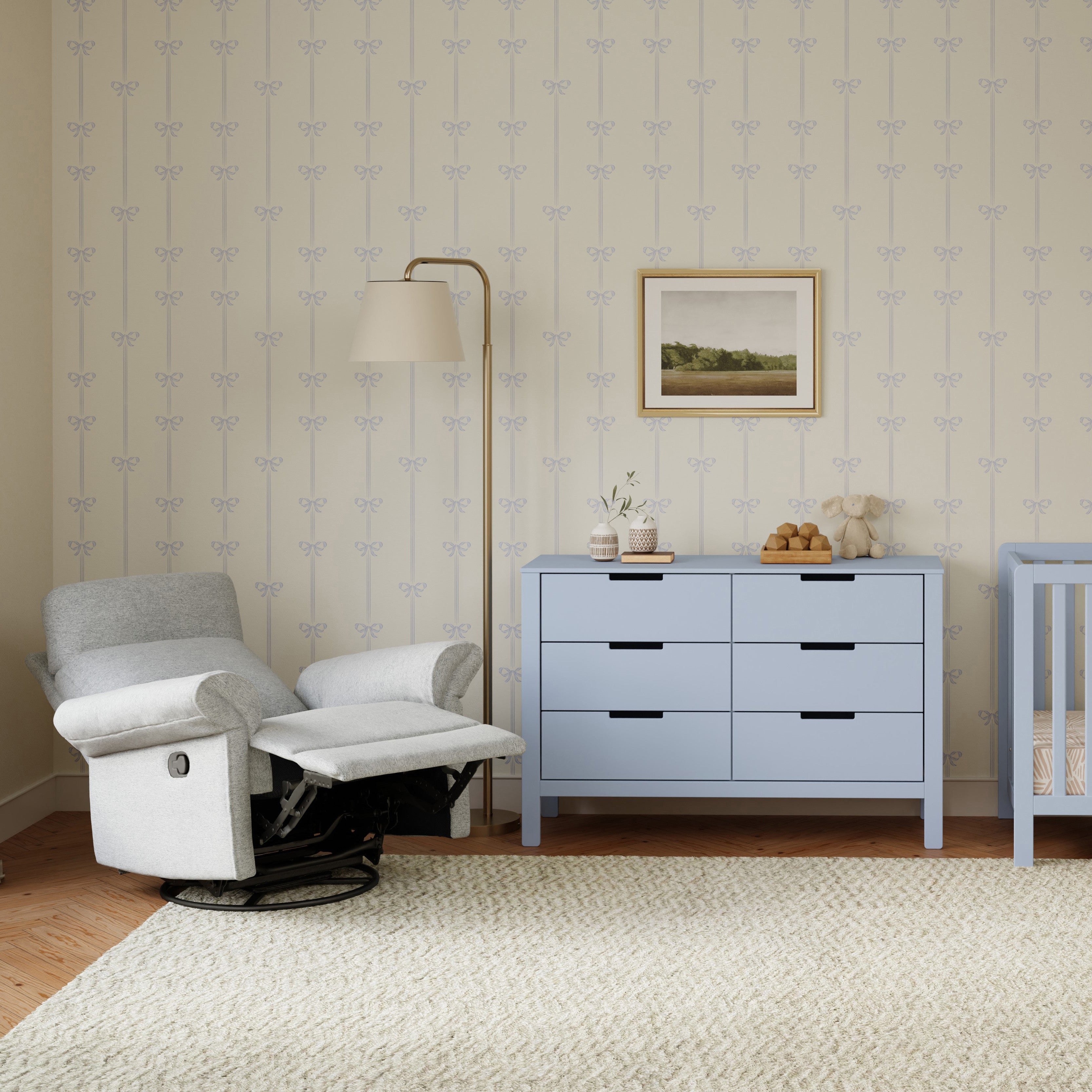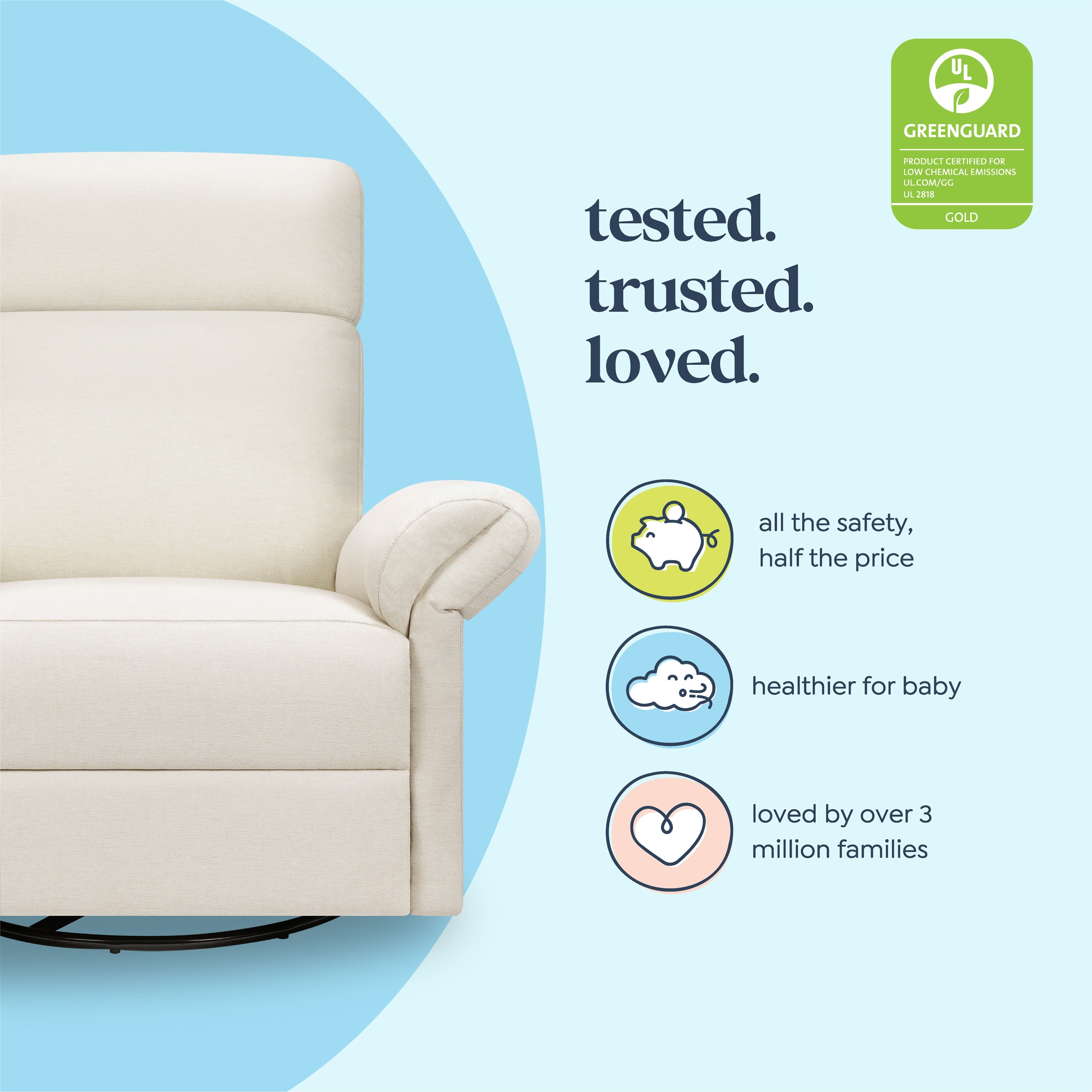 Designed with parents in mind, the Suzy Flex Recliner features adjustable cushioned armrests and an adjustable high pillowback headrest for enhanced head and neck support during feeding, rocking, or relaxing. Its smooth reclining mechanism and 360-degree swivel offer seamless transitions between activities, while the durable construction ensures lasting use. With a modern, versatile design, this chair effortlessly blends into your nursery and can transition to other spaces in your home as your family grows.