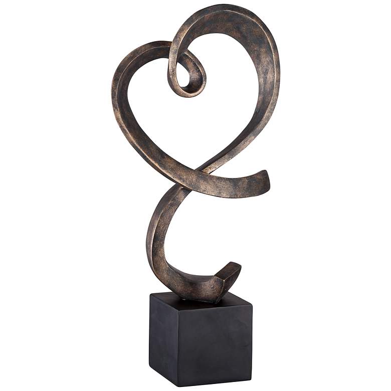 - Abstract modern sculpture depicts a single ribbon heart shape.