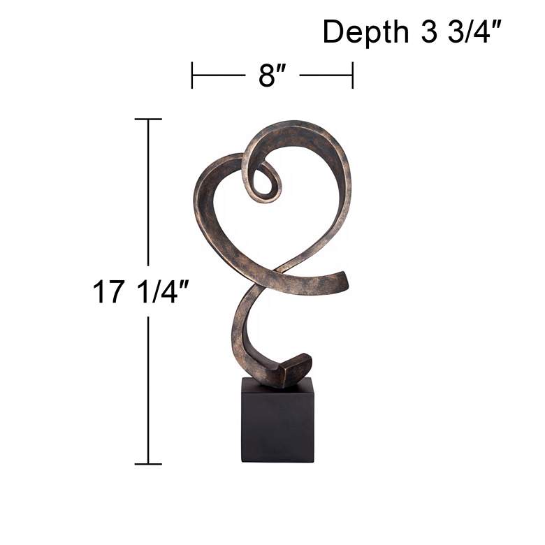 Add a touch of romantic flair to a credenza or accent table with this swirling heart sculpture. Finished in brushed nickel, this design sits atop a black base. Timeless and classic.