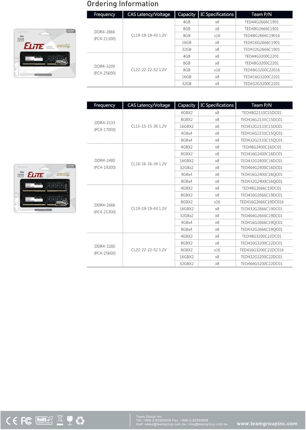 TEAMGROUP Elite DDR4 16GB Kit (2 x 8GB) 3200MHz (PC4-25600) CL22 Unbuffered Non-ECC 1.2V UDIMM 288 Pin PC Computer Desktop Memory Module Ram Upgrade - TED416G3200C22DC01
