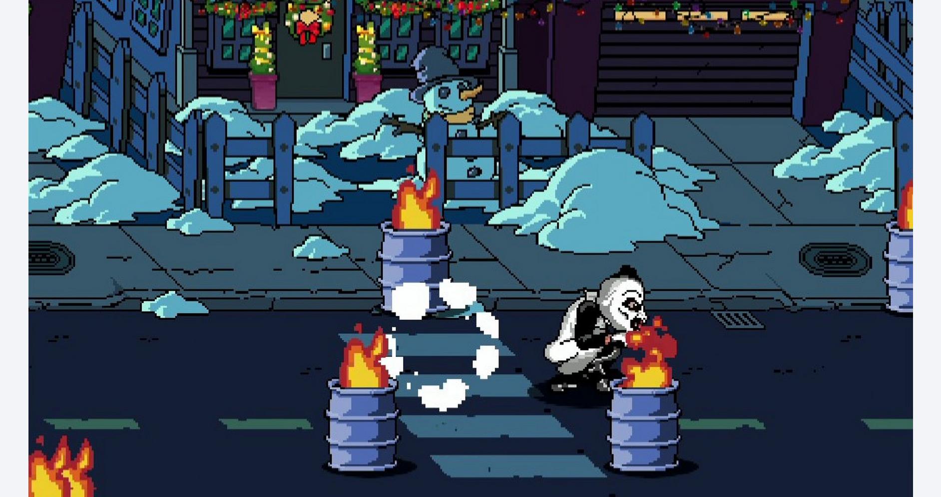 - Gorgeous Pixel Art & Animation: The game captures the essence of the Terrifier films with bright, cartoonish pixel art and fluid animations that vividly depict the gruesome action.