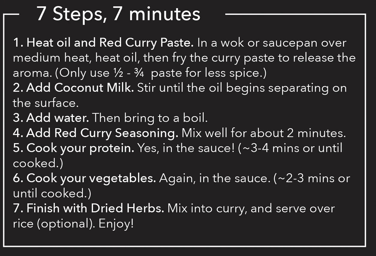 Our Organic Red Curry Kit is an experience in Thailand's vibrant flavors. Sourced from an organic farm in Thailand, we only use authentic, hard-to-find seasonings and herbs that make your meal deliciously, authentically Thai. This easy-to-use kit includes organic dried herbs, red curry seasoning, red curry paste, and coconut milk for a medium-spiced flavorful curry that is both vegan and gluten-free.