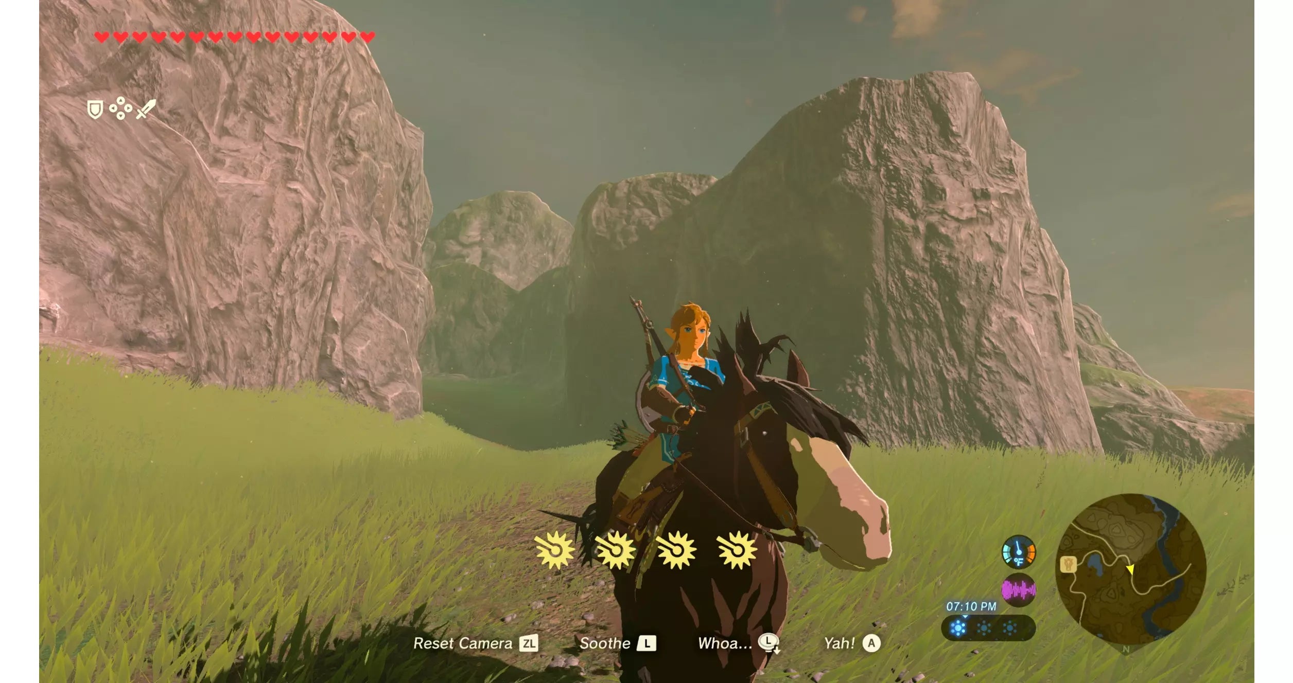 - Use your ingenuity to survive and thrive in Hyrule: The wilds of Hyrule make for a puzzling game of survival. Climb cliffs to scope out a destination; then cross great distances with the Paraglider or the horses you’ve tamed. You’ll discover items for crafting, beasts to hunt, and plants to forage. Scavenge weapons and armor…or claim them from enemies! From hammers to helmets, items have specific stats, resistances, effects, and levels of durability. Use everything at your disposal to find and conquer more than 100 shrines. Luckily, the in-game Sheikah Slate can project Runes that manipulate objects and enemies in clever ways.