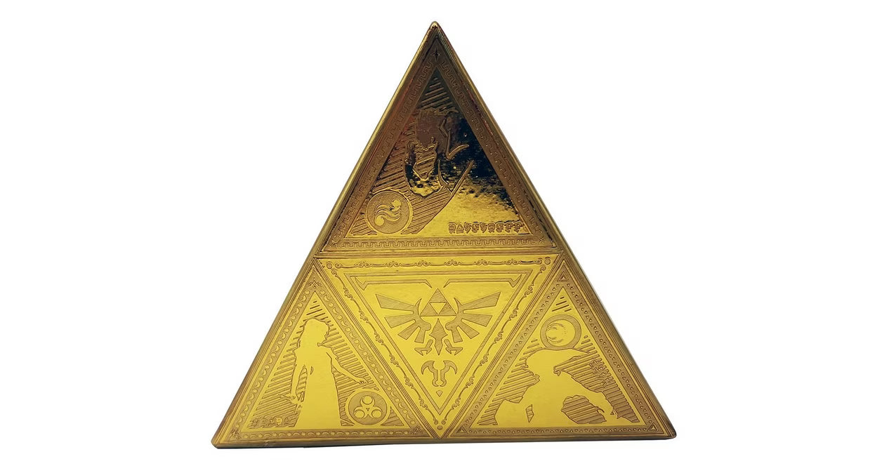 Let the Golden Power (aka the Triforce) from The Legend of Zelda keep your spare change safe. This coin bank is is made to look like the relic from those who created Hyrule. The coin slot on is near the top, and there's a rubber stopper on the bottom.