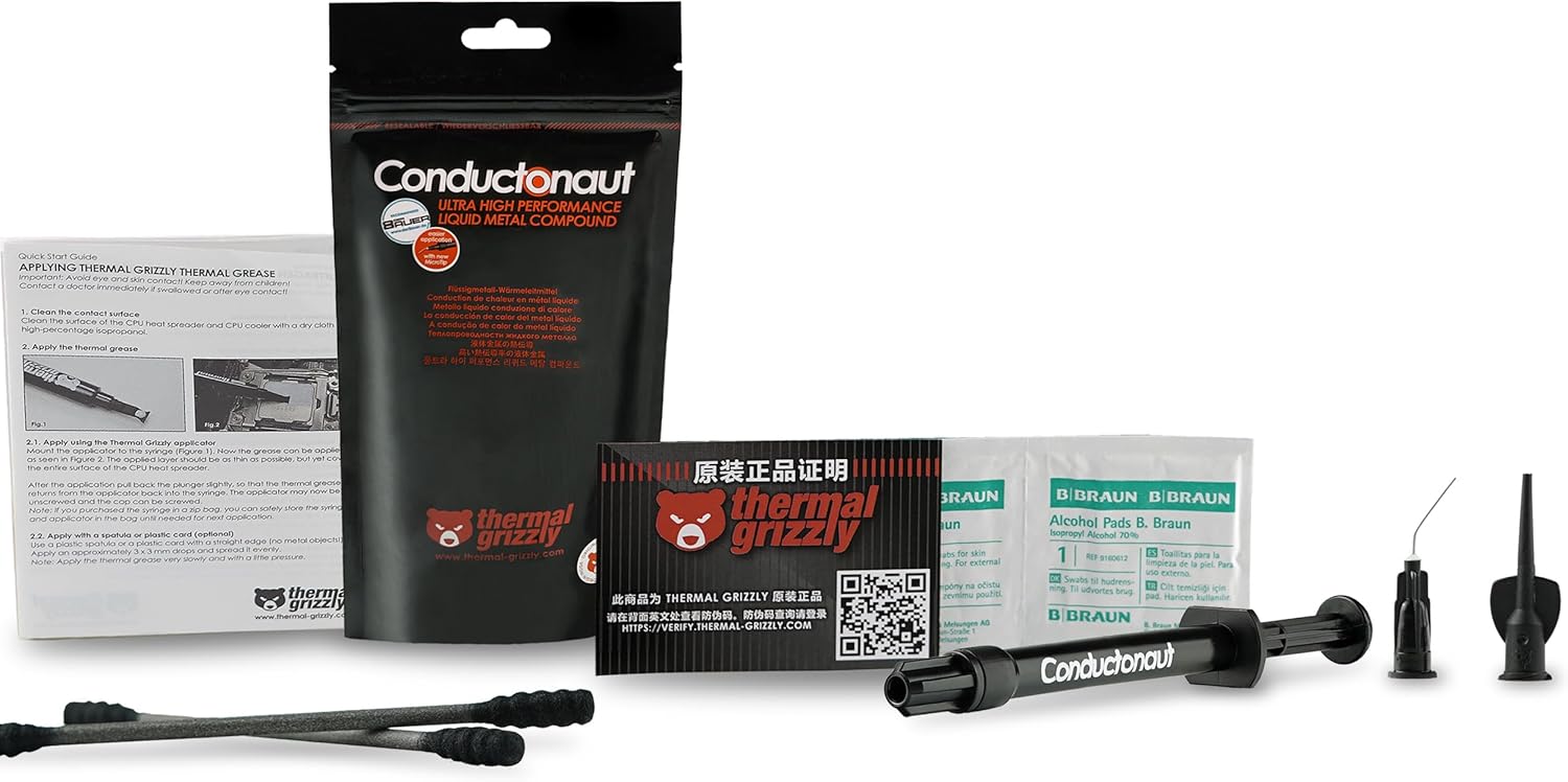 Thermal Grizzly Conductonaut - 5 Gram - High Performance Liquid Metal Compound Thermal Paste for Superior CPU/GPU/Console Cooling - Made in Germany