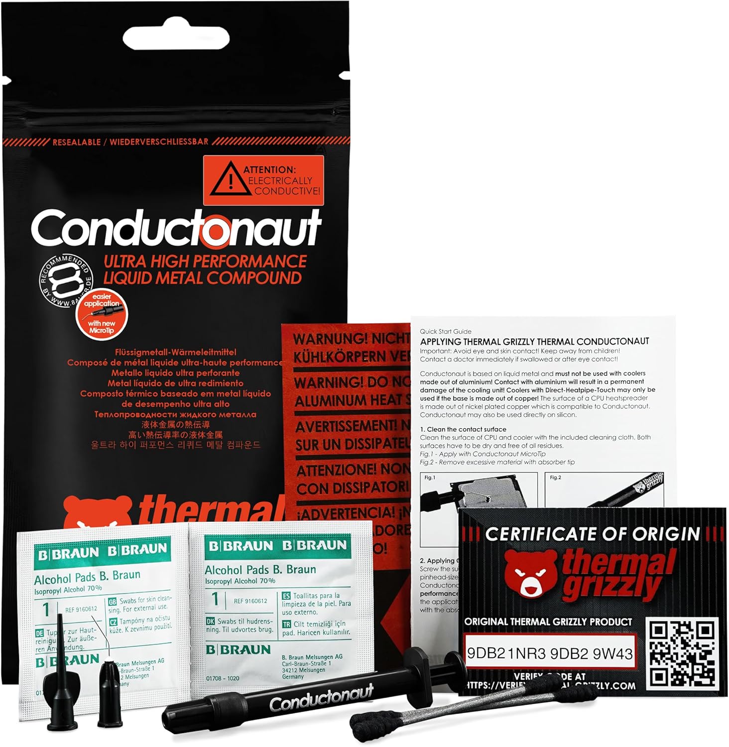 Thermal Grizzly Liquid Metal Thermal Paste - Conductonaut 1 Gram - Made in Germany Liquid Metal for PS5, CPU, GPU, Xbox, Game Consoles - Best for Overclocking, Premium Materials