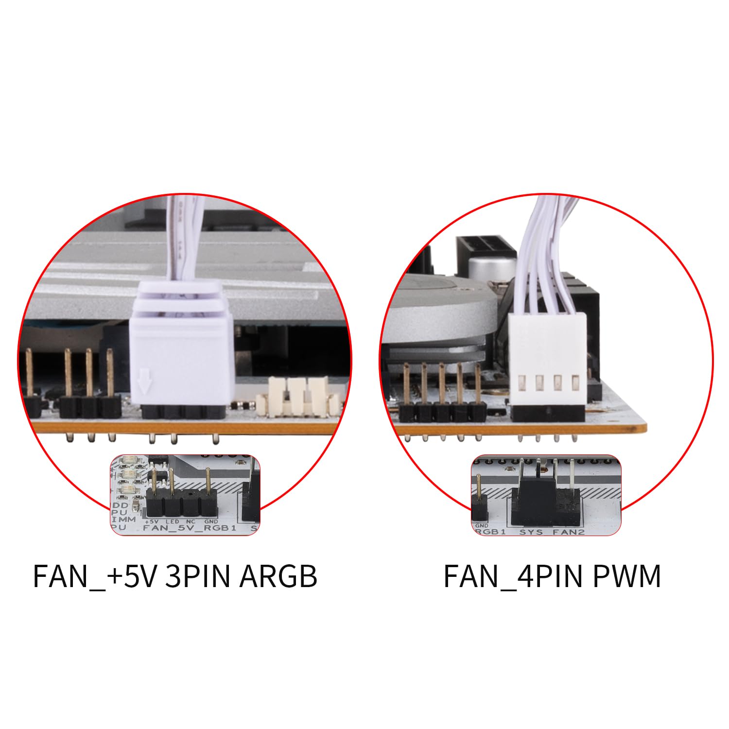 - [ARGB Lighting Effect] dual fans with ARGB lighting effects, the color of the light can be adjusted using the motherboard's built-in lighting software, the lighting interface is 5V 3PIN ARGB interface, with series function, can be connected to the lights of two fans.