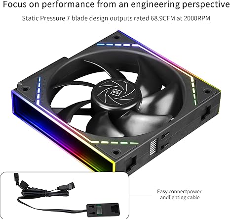 - [Detail Optimization] The argb fan is made of UL CLASSA insulation grade industrial-grade strength PBT+PC material, which supports PWM series control of the fan, and the power supply interface is 4pin PWM, and the lighting interface is 3pin ARGB,Fans of the same type are connected in series through buckles, and then connected to the corresponding interface of the motherboard through connectors that fasten the wires.