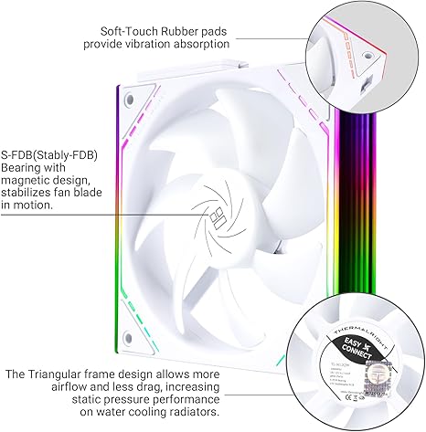 - [Good Bearing]The pc fan adopts S-FDB magnetic stable bearing, which solves the problem of shaking of the fan blades in hoisting mode, and the sealing structure of the bearing makes the fan durable, maintenance-free, and does not need to add lubricant to maintain (do not disassemble)