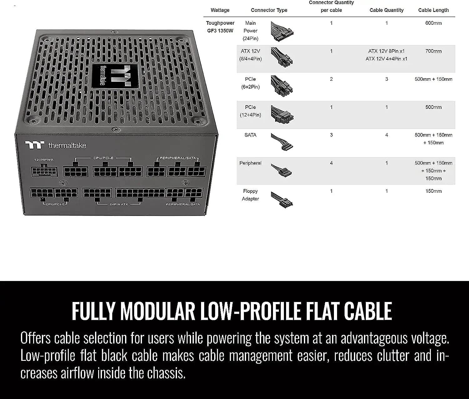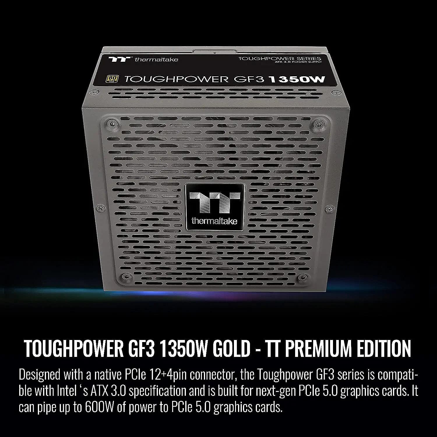 Thermaltake Toughpower GF3 1350W, True 600W 12VHPWR Connectors on PSU & NVIDIA RTX 40 series, ATX 3.0/PCI-E 5.0 Ready, 80+ Gold, SLI/Crossfire Ready Power Supply, PS-TPD-1350FNFAGU-4, 10 Year Warranty