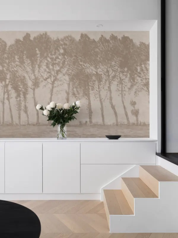 A mural is a wallpaper printed in strips that all fit together to create one large image or design, typically on one wall. Murals are custom-fit to any wall size.