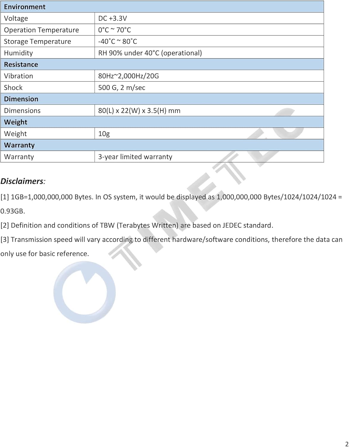 - Support S.M.A.R.T. technology, TRIM command functions, Garbage Collection technology, Wear-Leveling technology, RAID, ECC (Error Correction Code), New Generation Power Saving technology.