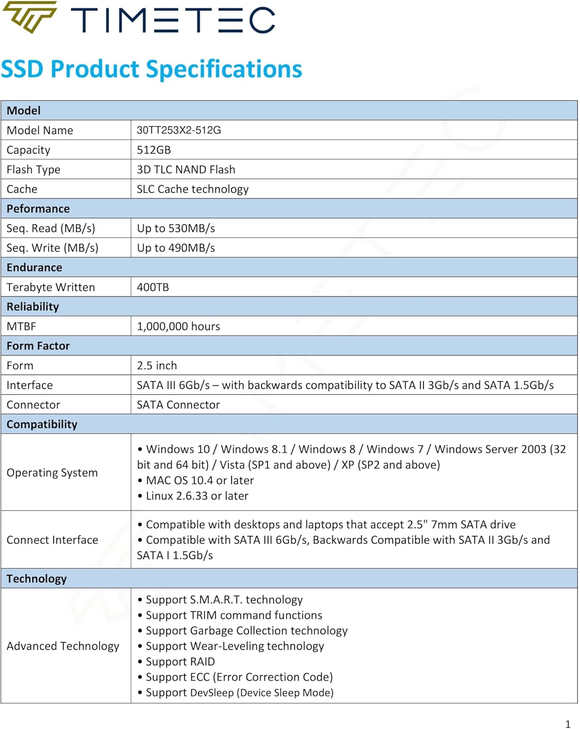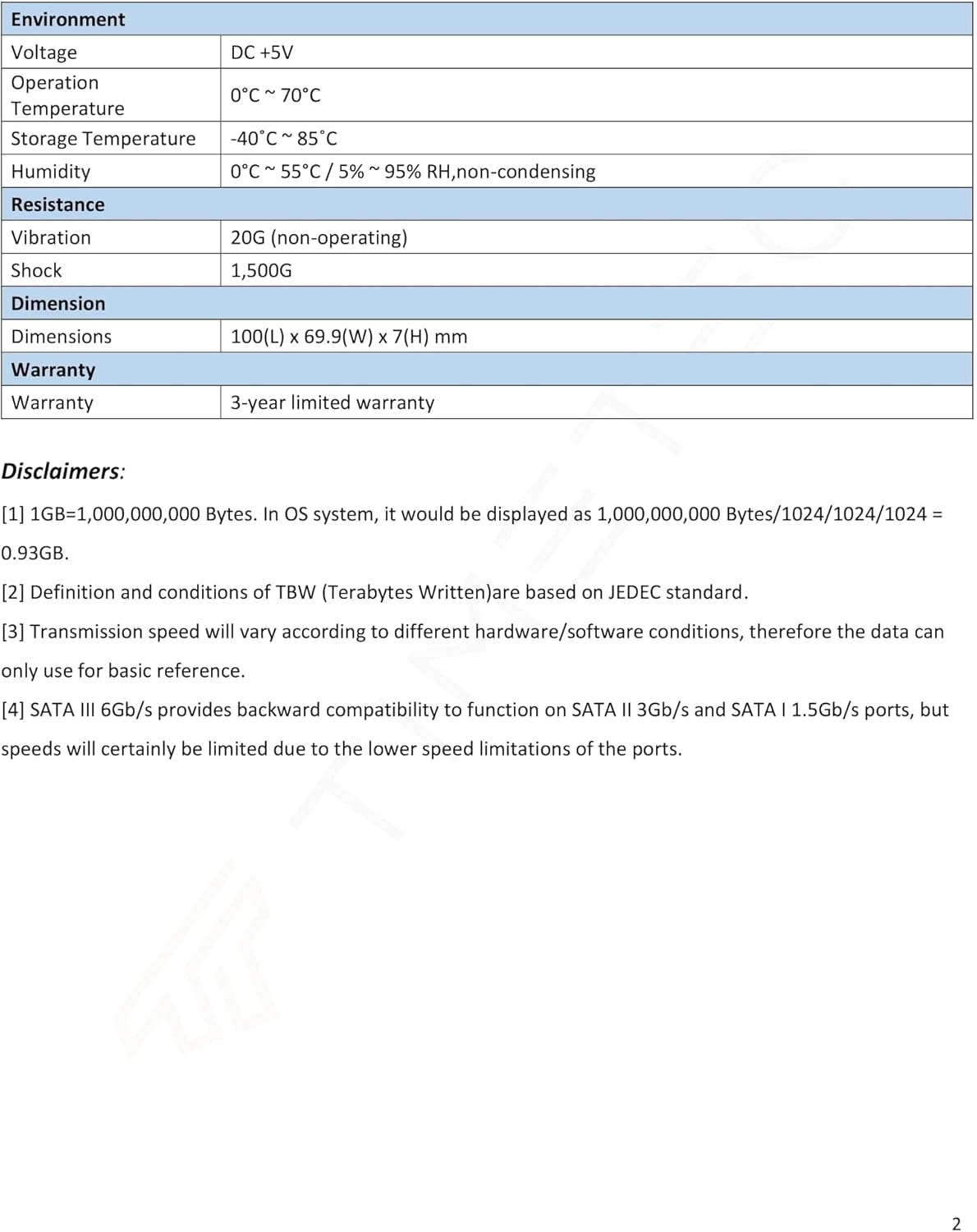 - Support S.M.A.R.T. technology, TRIM command functions, Garbage Collection technology, Wear-Leveling technology, RAID, ECC (Error Correction Code), New Generation Power Saving technology.