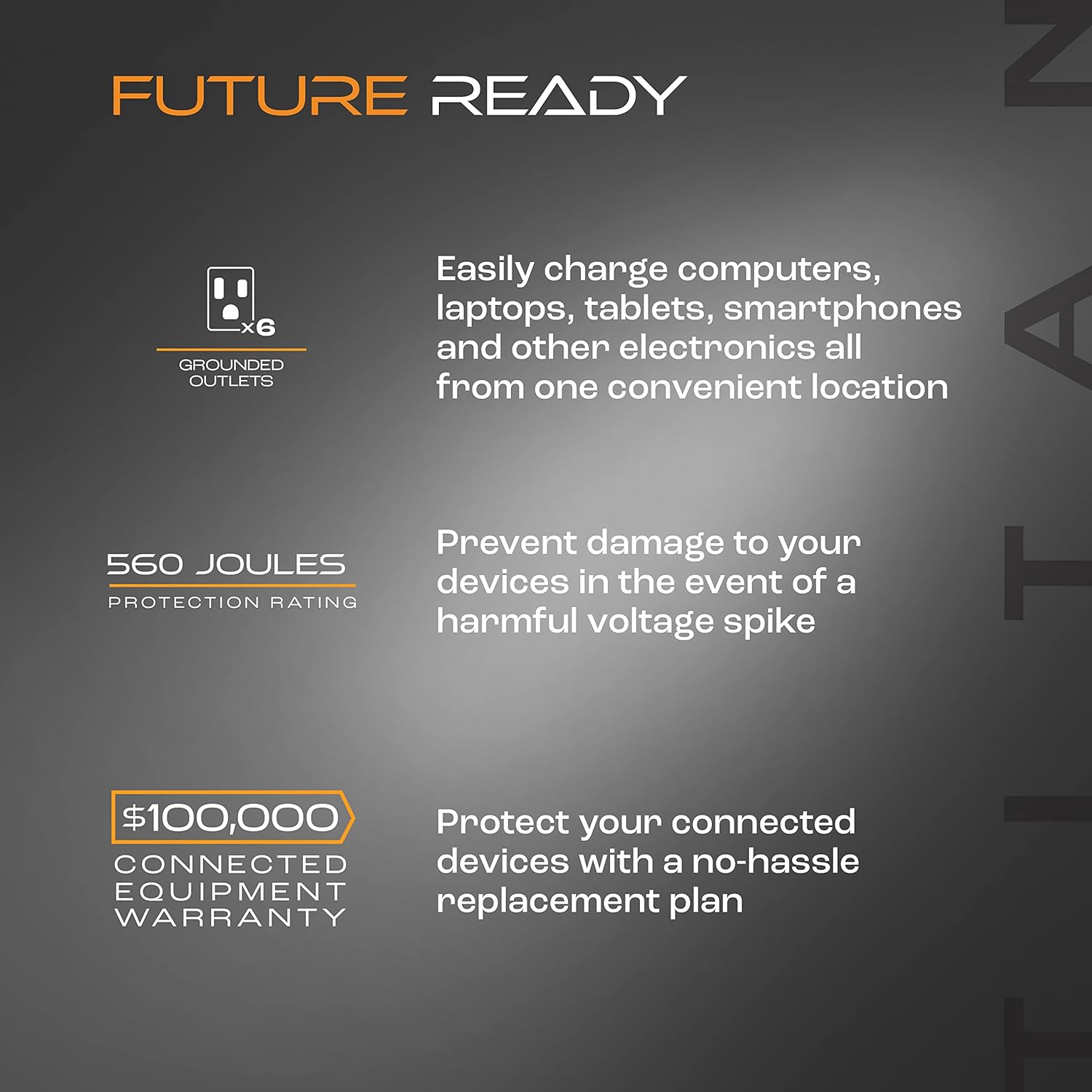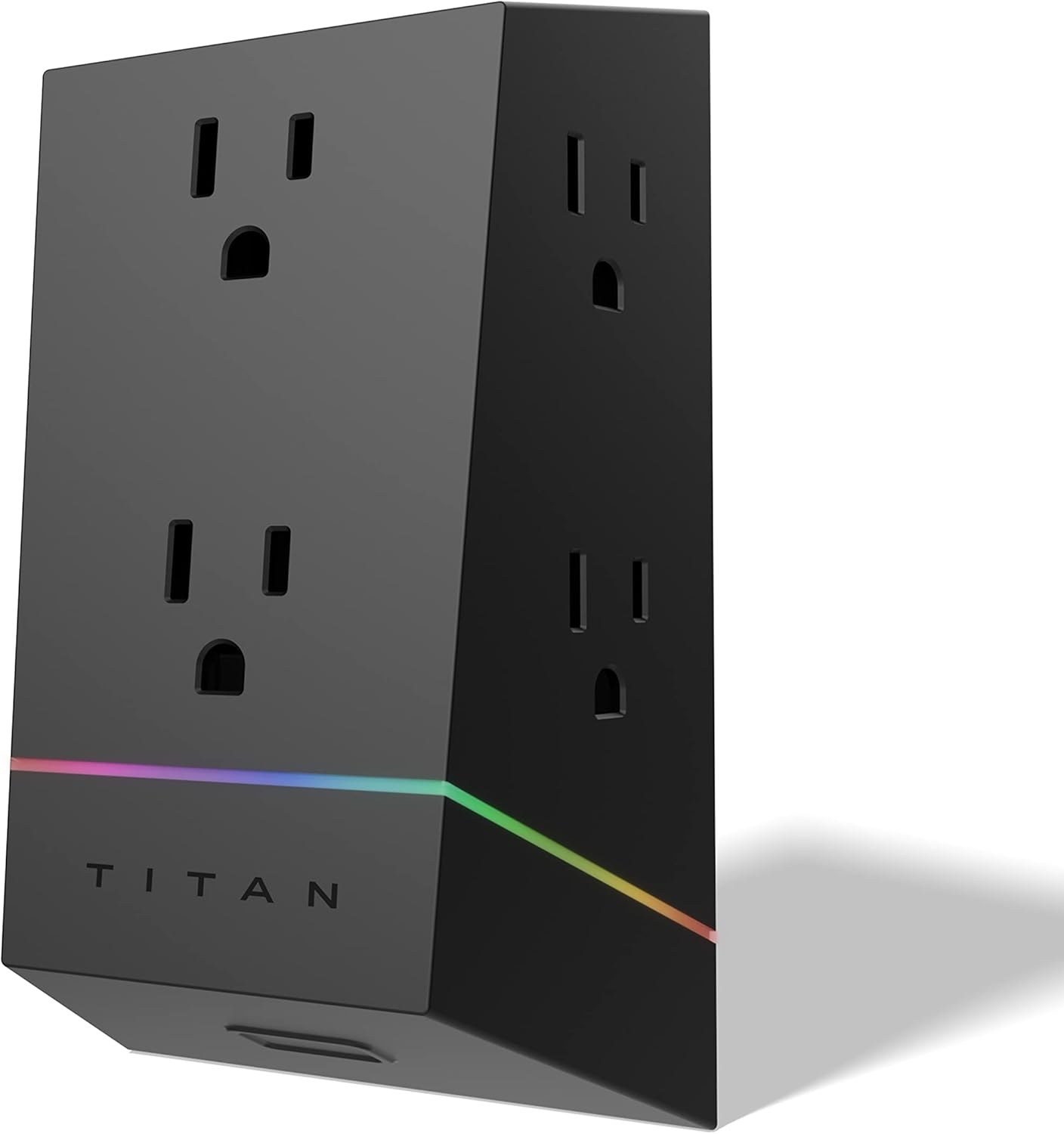 Titan 6-Outlet Surge Protector, LED Light Strip with Full Spectrum Color-Select, Outlet Extender, Compatible with Power Gaming PC, Laptop, Computer... Read more Read more