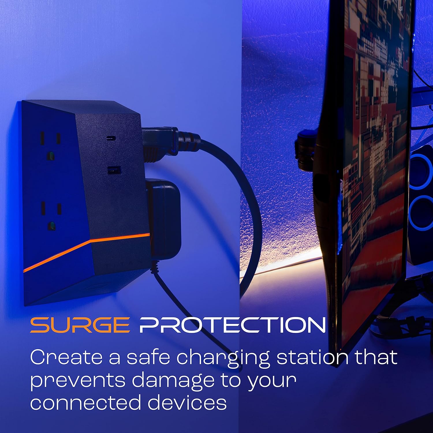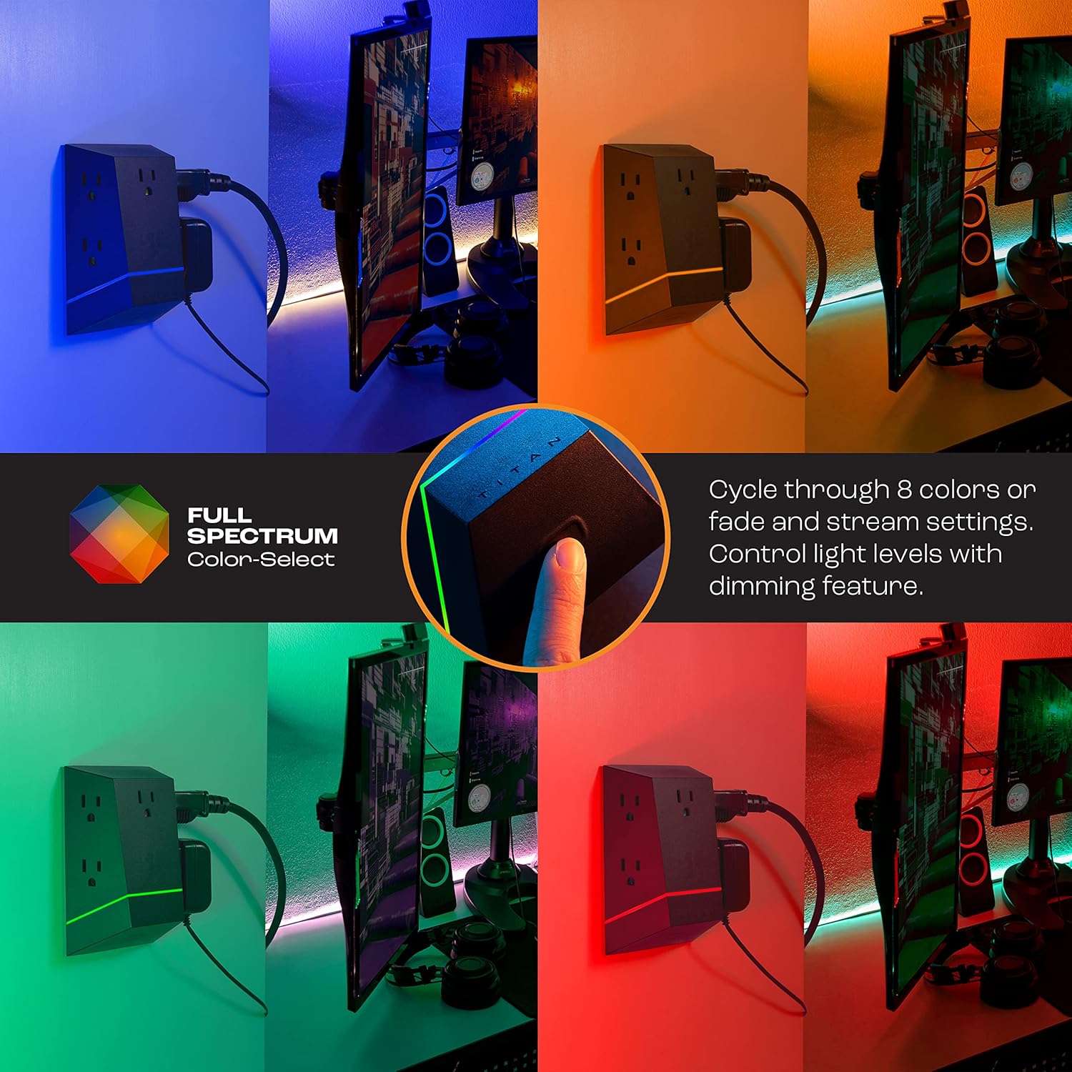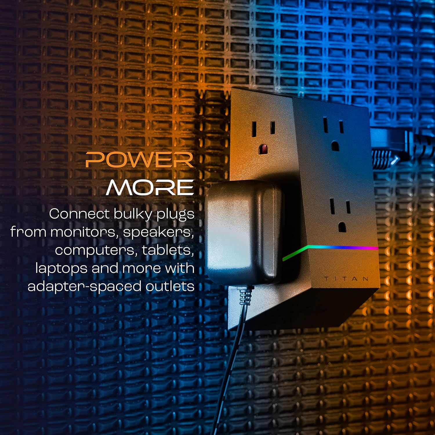 Titan 6-Outlet Surge Protector, LED Light Strip with Full Spectrum Color-Select, Outlet Extender, Compatible with Power Gaming PC, Laptop, Computer Setup, PS4, PS5, Xbox, Black, 57365