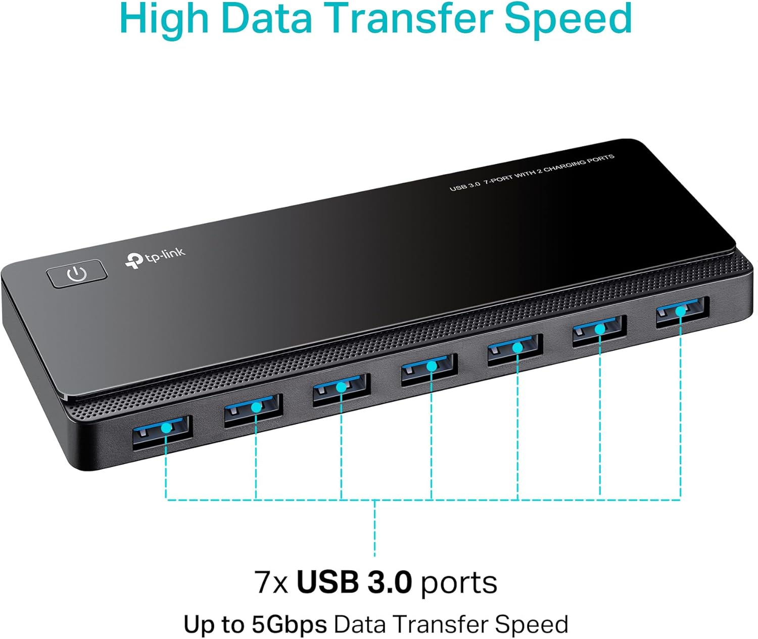 TP-Link Powered USB Hub 3.0 with 7 USB 3.0 Data Ports and 2 Smart Charging USB Ports. Compatible with Windows, Mac, Chrome & Linux OS, with Power On/Off Button, 12V/4A Power Adapter(UH720)