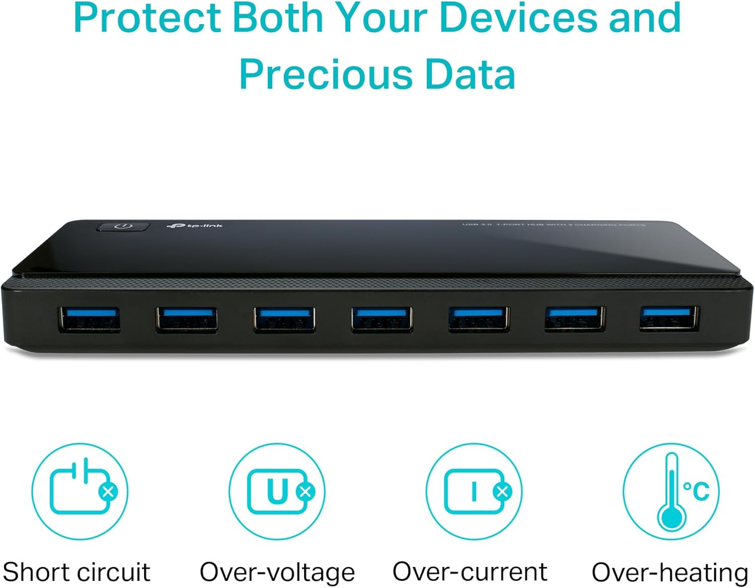 - Protect Both Your Equipment and Your Data: UH720 has a sophisticated circuit design with multiple overheat, overload, overvoltage and short circuit protections. A built-in surge protector keeps both your devices and your data safe in the data transfer process.