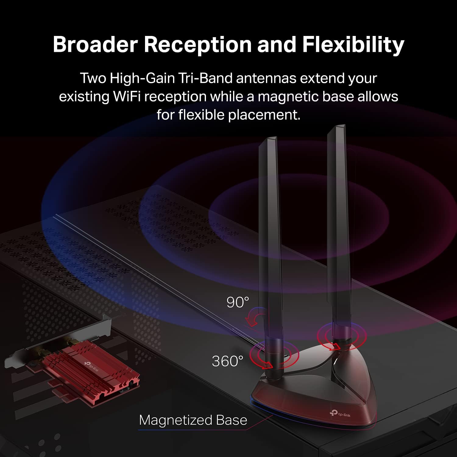 TP-Link WiFi 6E Intel AX210 AXE5400 PCIe WiFi Card for PC Archer TXE75E- Tri Band Wireless Adapter for Desktop PC w/Magnetic Base Dual Antenna, Bluetooth 5.3(USB Port), WPA3, MU-MIMO, OFDMA, 802.11ax