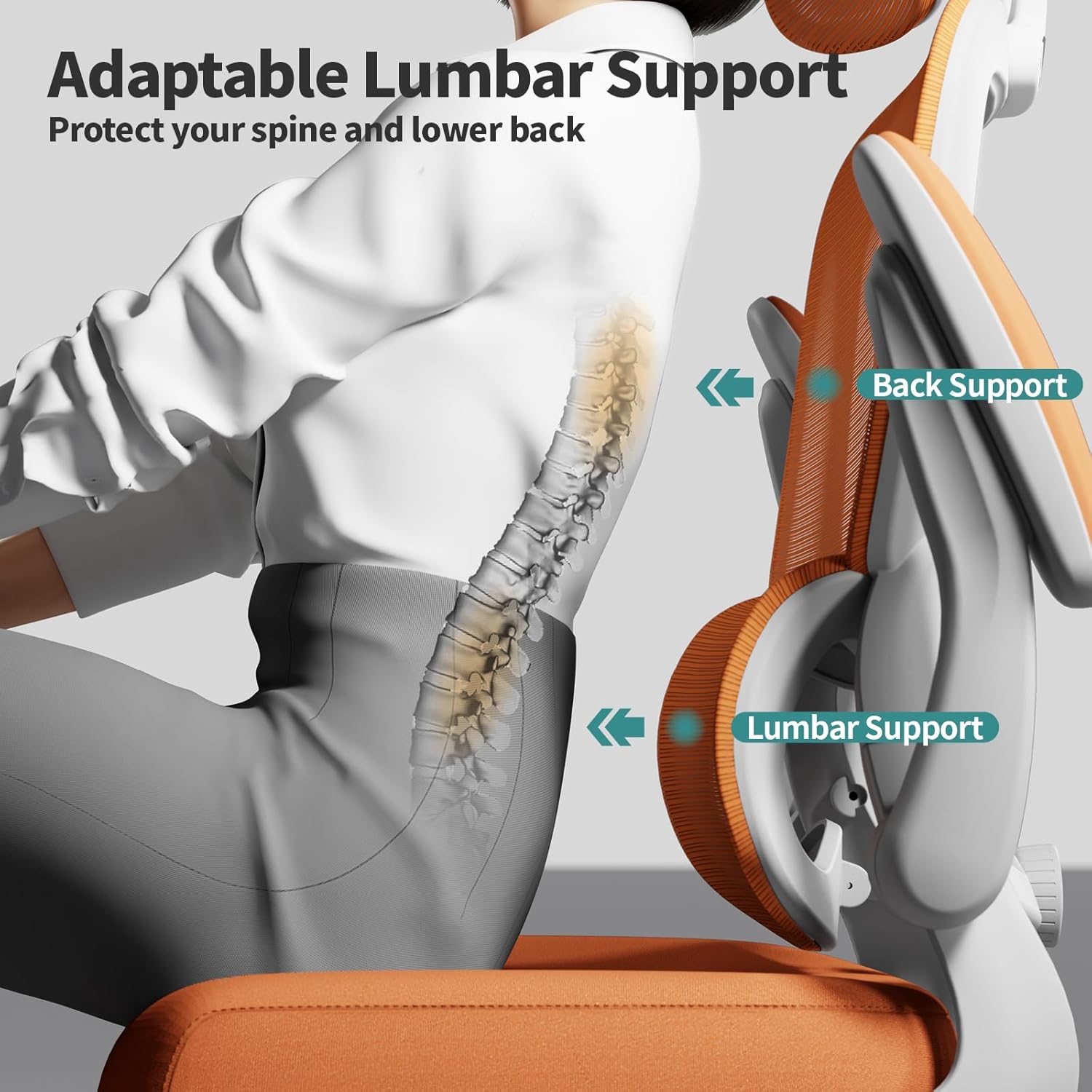 TRALT Office Chair Ergonomic Desk Chair, 330 LBS Home Mesh Office Desk Chairs with Wheels, Comfortable Gaming Chair, High Back Office Chair for Long Hours (Orange)