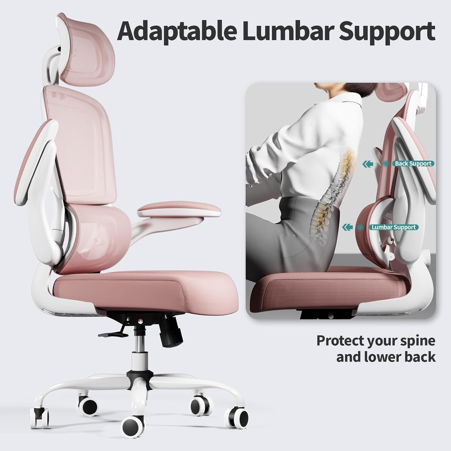 TRALT Office Chair Ergonomic Desk Chair, 330 LBS Home Mesh Office Desk Chairs with Wheels, Comfortable Gaming Chair, High Back Office Chair for Long Hours (Pink)