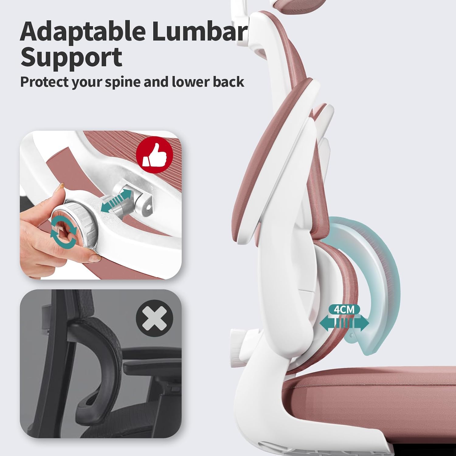 TRALT Ergonomic Office Chair – Mesh, High Back, Wheels – Pink