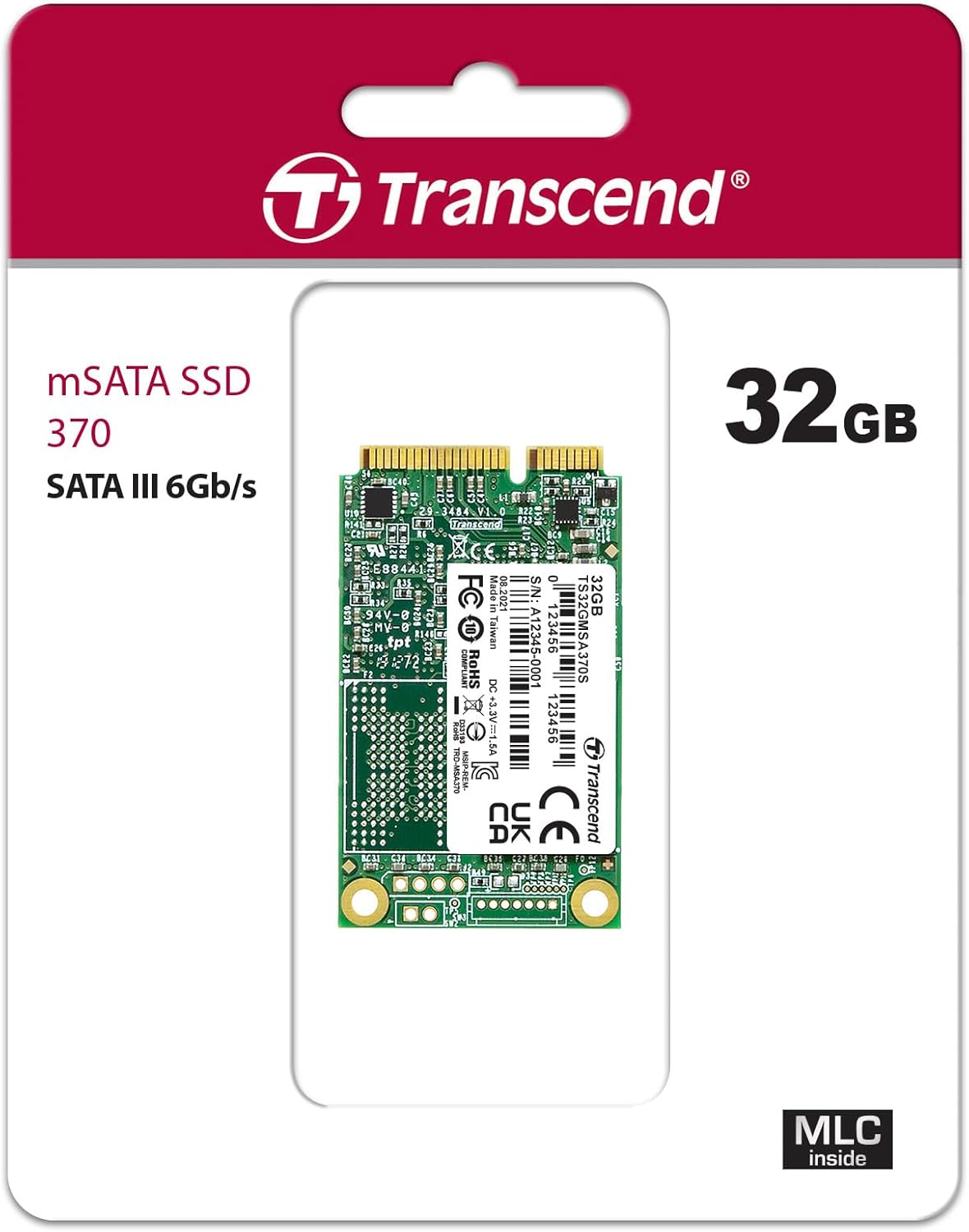 Transcend 32GB SATA III 6G/s mSATA SSD, Internal Solid State Drive, Up to 530 MB/s, Dram Cache, for Ultrabook, Desktop, Tablet PC, Server, MLC - TS32GMSA370S