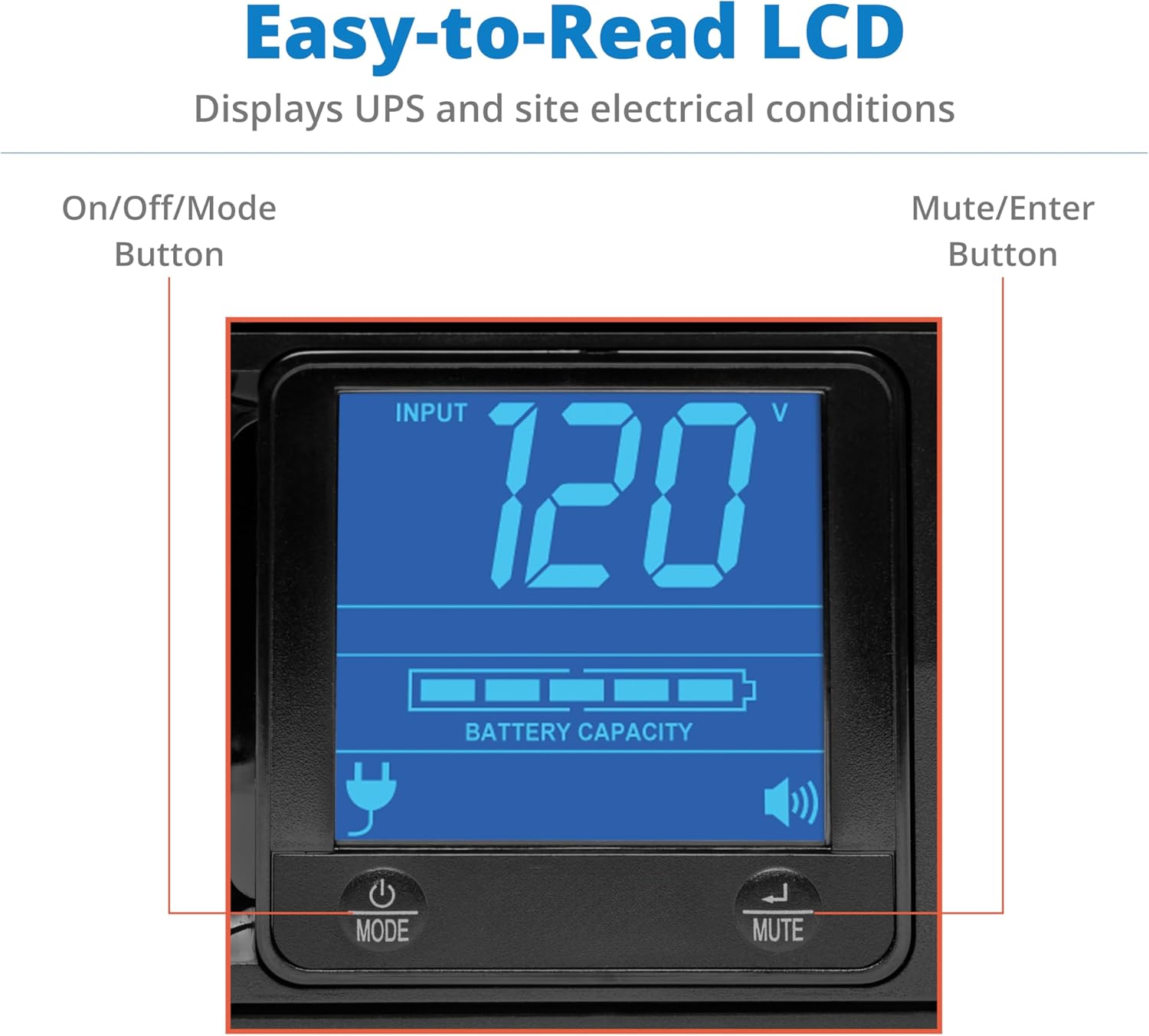- ADVANCED POWER FEATURES: User-replaceable internal batteries and RJ45 Ethernet port for dataline surge protection up to 100 Mbps. The large rotatable LCD screen monitors operations like voltage, runtime, load, battery, and operating mode