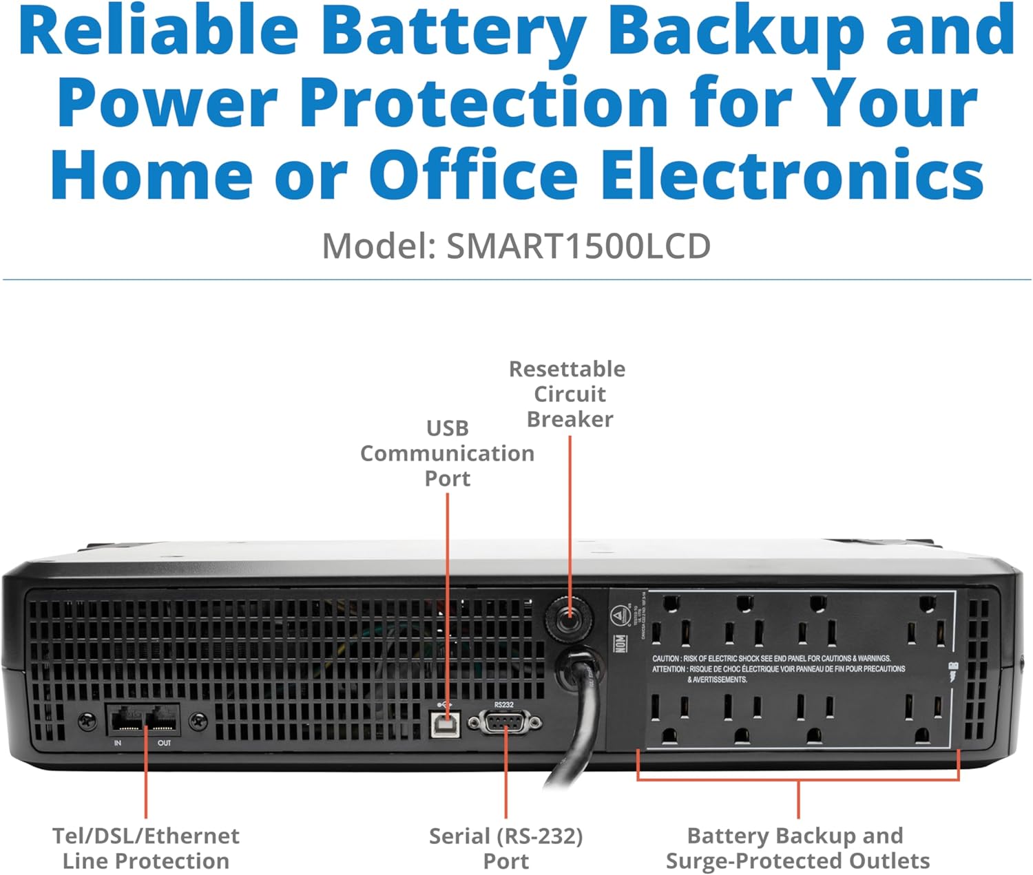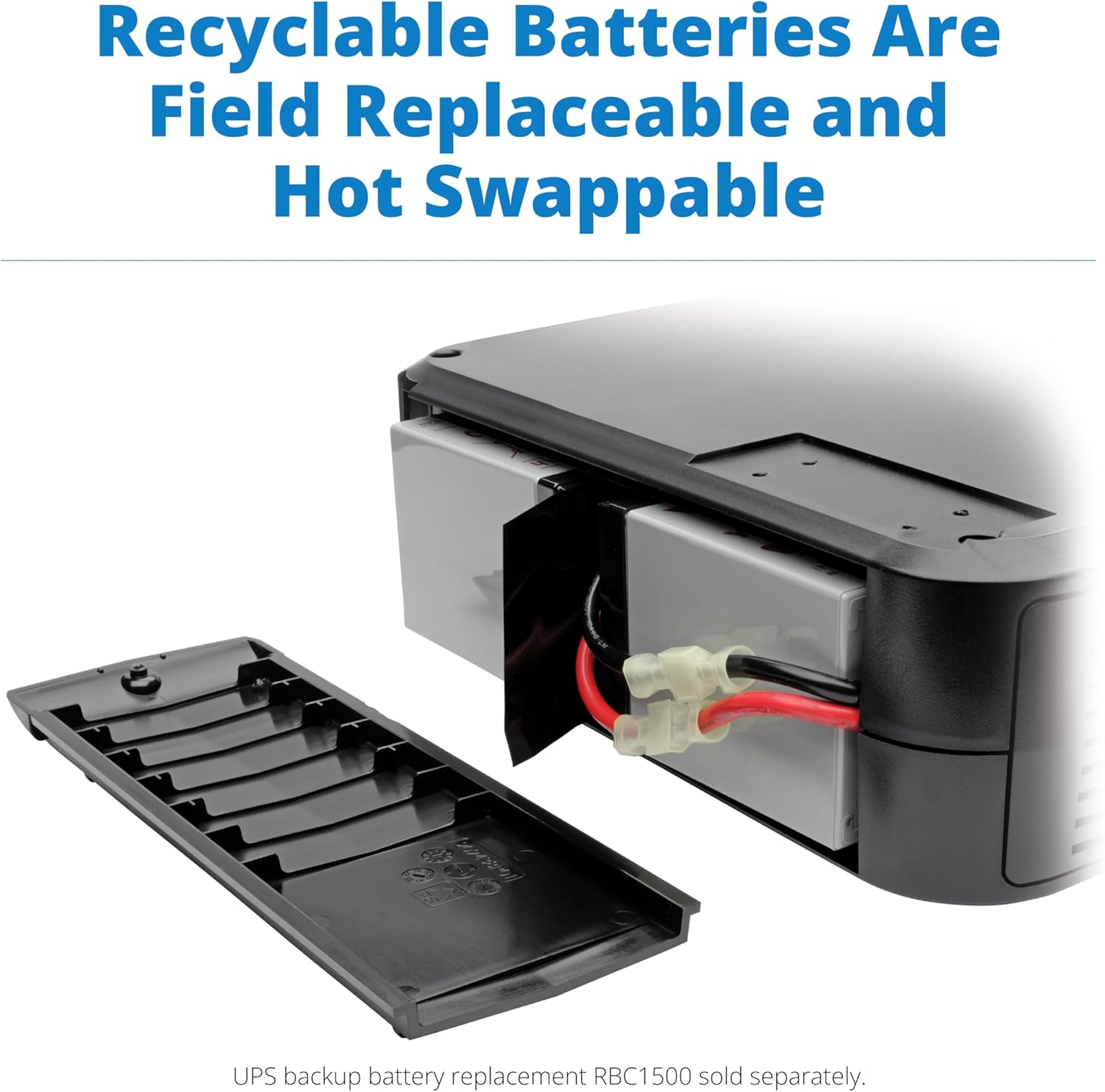 - 1500VA/900W UPS: Eight NEMA 5-15R outlets provide reliable UPS battery backup & surge protection for servers, computers, and peripherals. The six-foot NEMA 5-15P input power cord ensures easy connection to compatible AC outlets