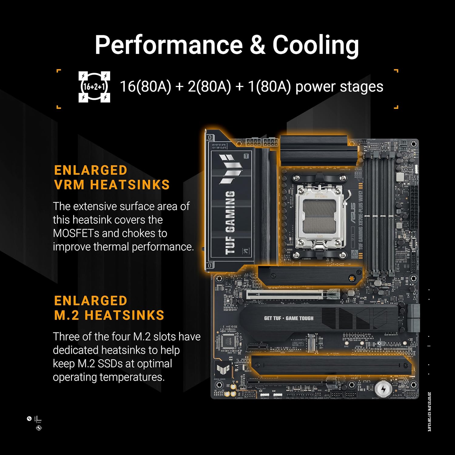 TUF Gaming X870E-PLUS WIFI7 AMD X870E ATX Motherboard with 16+2+1 80A Power Stages, DDR5 Support with AEMP, PCIe 5.0 x16 with PCIe Slot Q-Release Slim, Four M.2 Slots, WiFi 7 with ASUS WiFi Q-Antenna