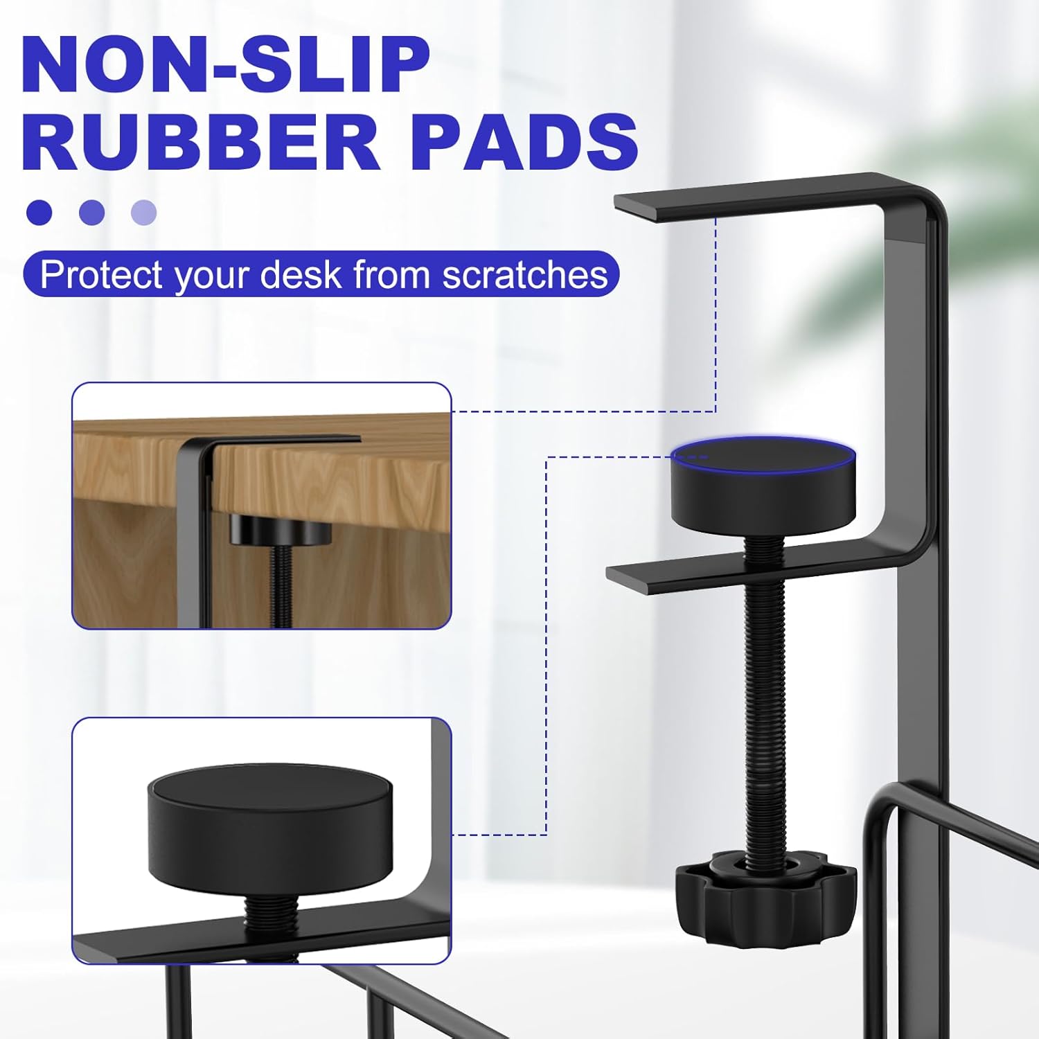 - SILICONE DESIGH & ADVANTAGES : Soft rubber pads on adjustable and removable clamps protect your desk or table from scratches. No Dust Accumulation, Anti-overheating, Flexible cable adjustment, Extra large capacity.