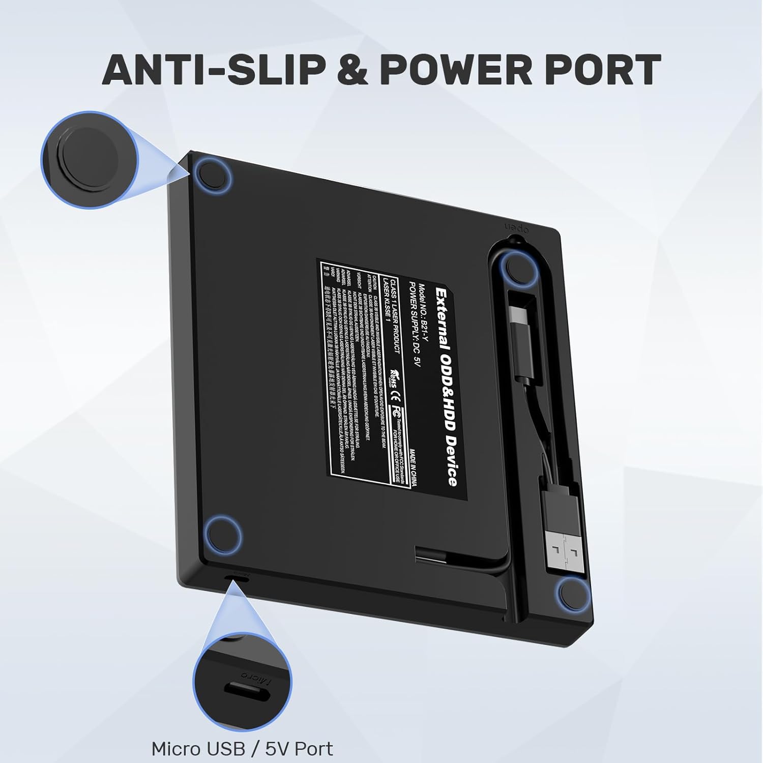 - 【Portable & Compact】- This external disk drive is slim and light, and the built-in cable is easy to use and organize, so you can easily carry it in your laptop bag, making it ideal for the home, office, or wherever you go. It's also a great idea to give as a gift to fans who collect CDs and DVDs.