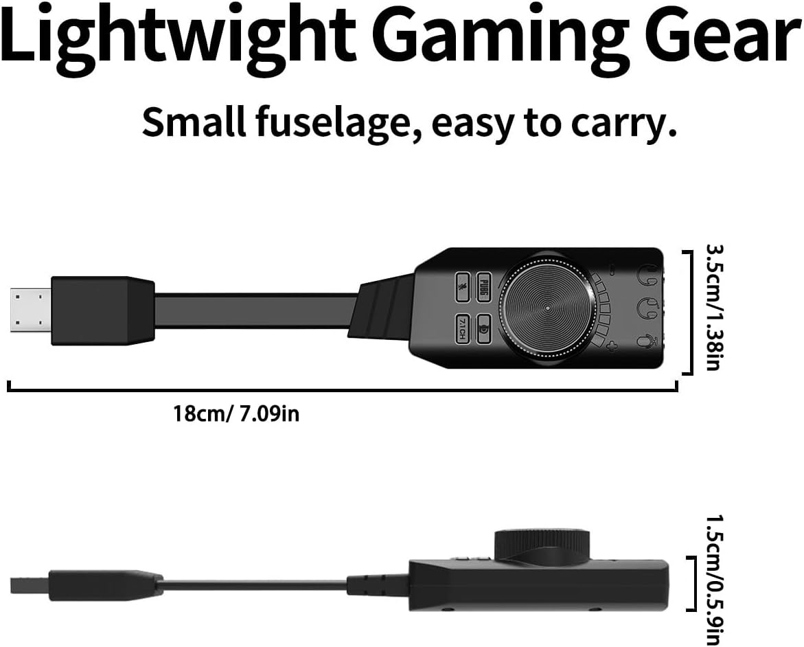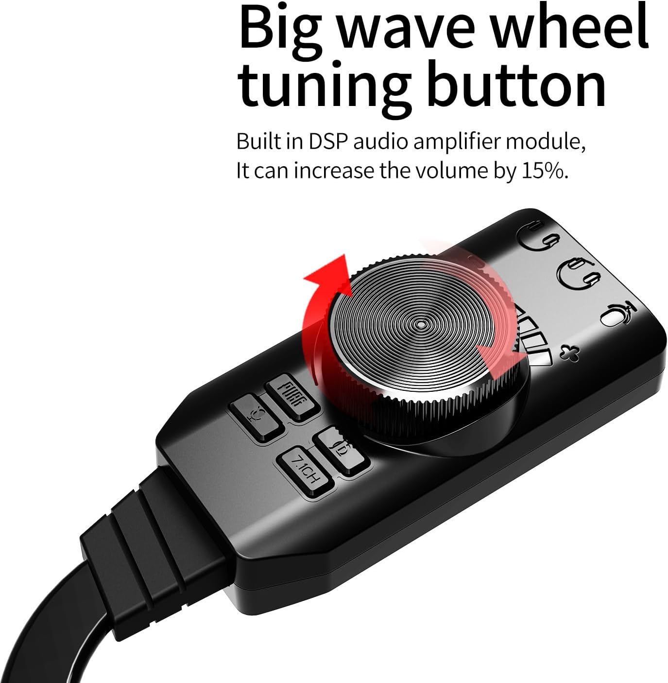 USB Sound Card Virtual 7.1 Surround Sound USB External Sound Card Adapter with PUBG Sound Effects for PC/PS4/PS5/Mac/Gaming Headset,Plug and Play
