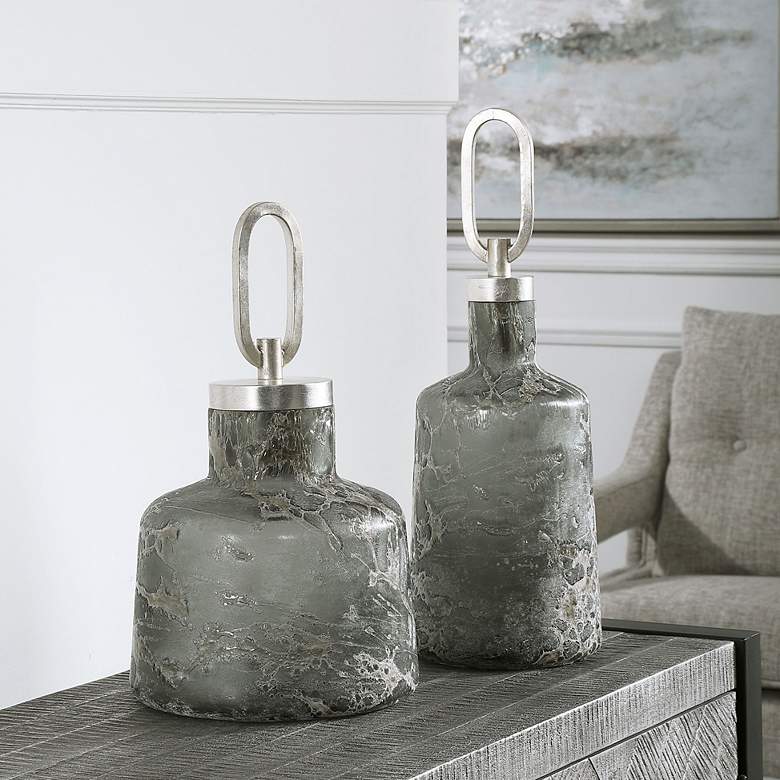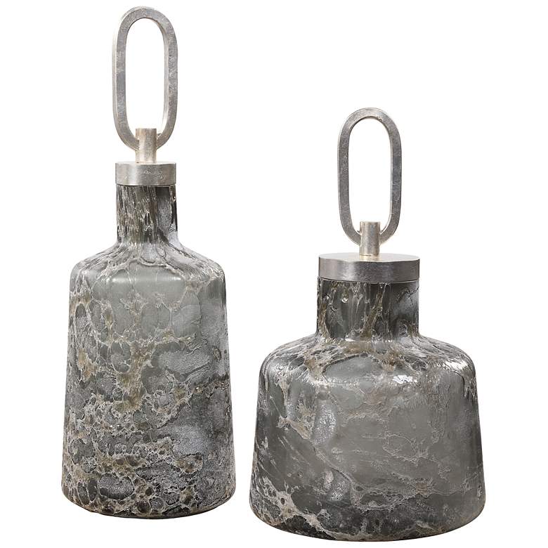 Uttermost Storm Charcoal Taupe Silver Glass Bottles Set of 2