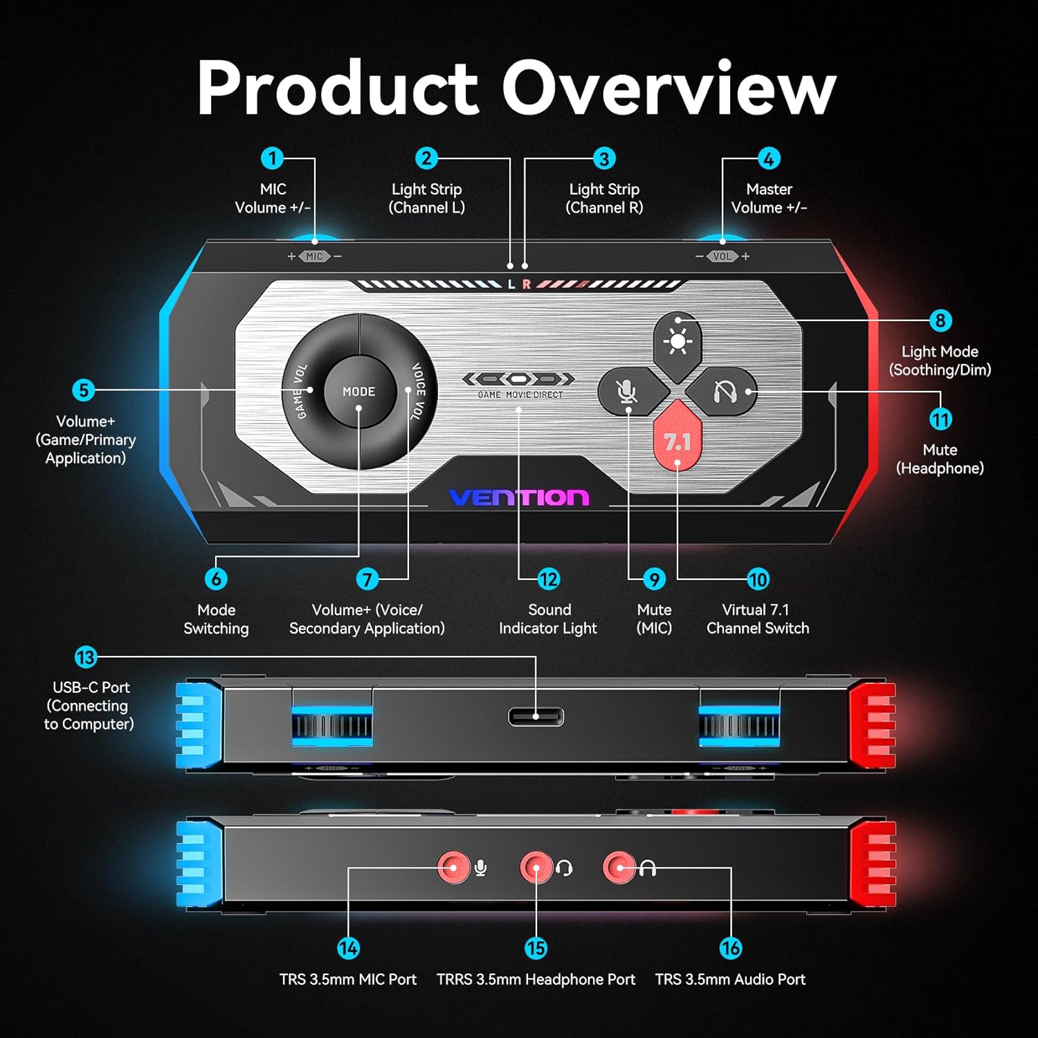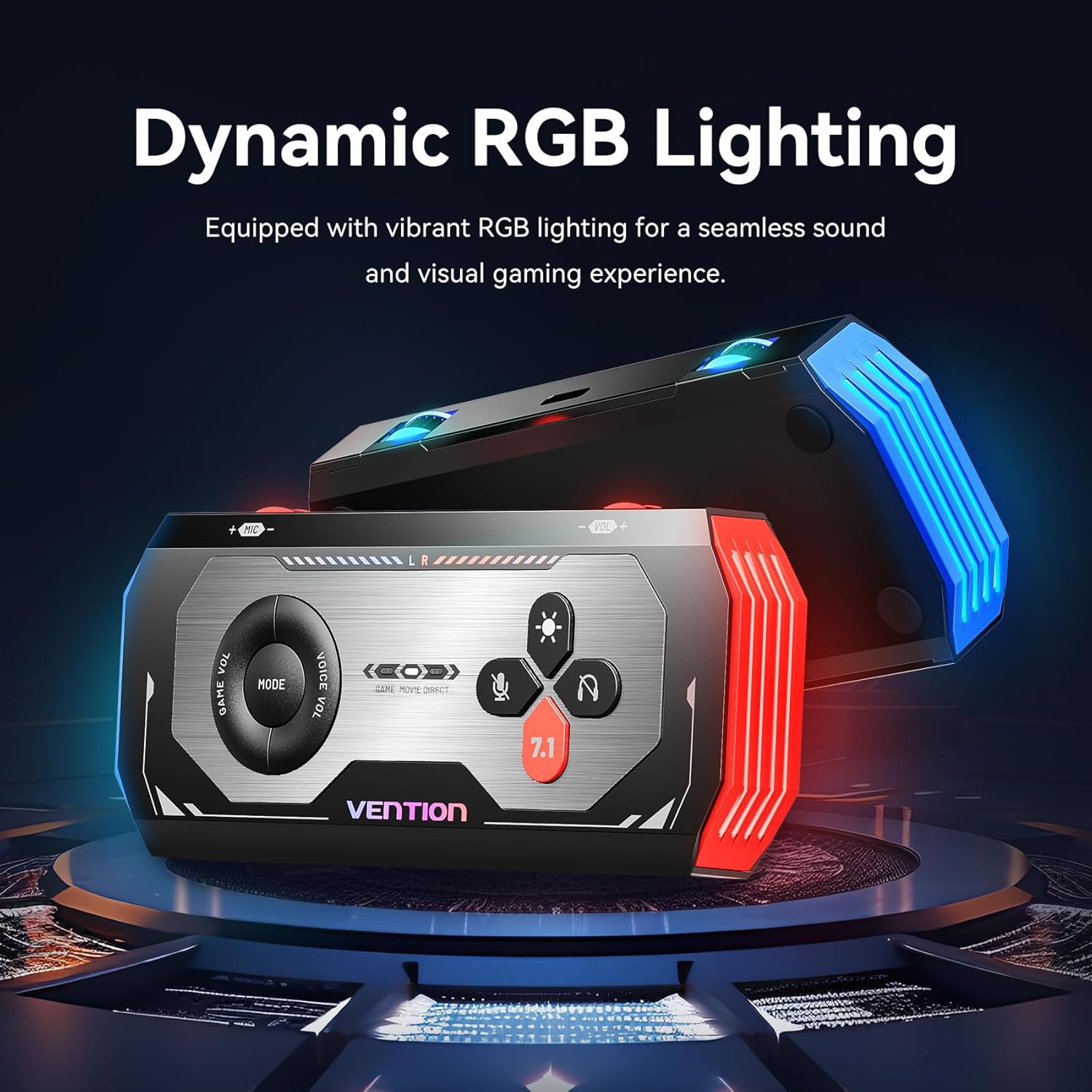 VENTION USB External Sound Card Gaming DAC AMP- 7.1 Virtual Surround Sound Blaster with USB C Cable, 24 Bit -192 KHz, RGB Light Mode, Audio Amplifier for PS5 4 Xbox Nintendo Switch PC Headset