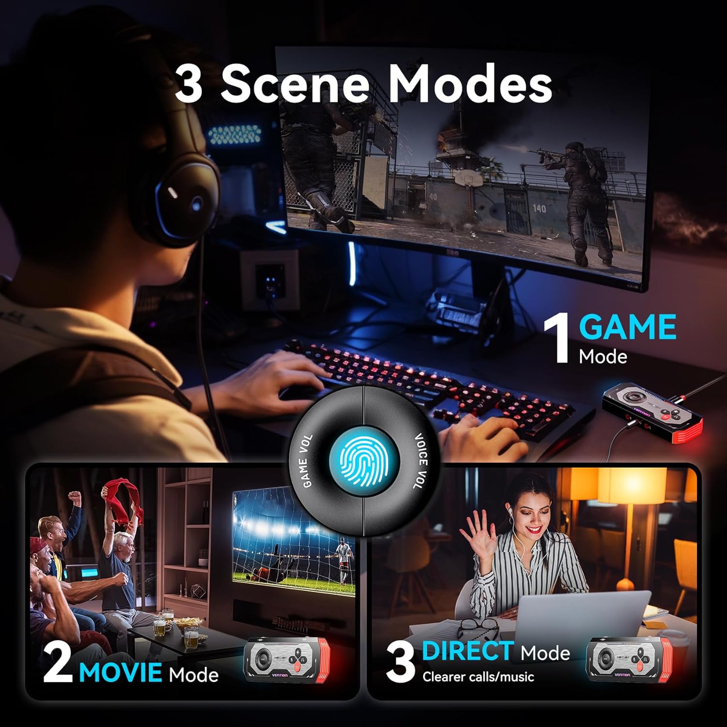 - Gaming Optimization: Dual-output support allows simultaneous connection of headphones and external speakers, giving you high-quality audio enjoyment in different settings; The precise sound effects help you capture key audio cues in the game, enhancing your reaction times during combat
