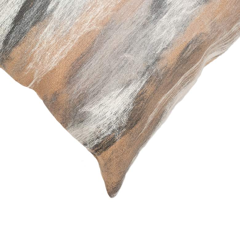 - Beige, brown, and gray watercolor front with abstract brushstroke pattern. Taupe solid back.