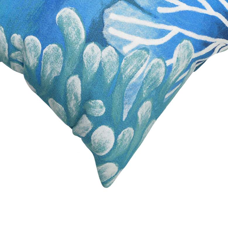 - Blue reef pattern printed on 100 percent polyester pillow front.