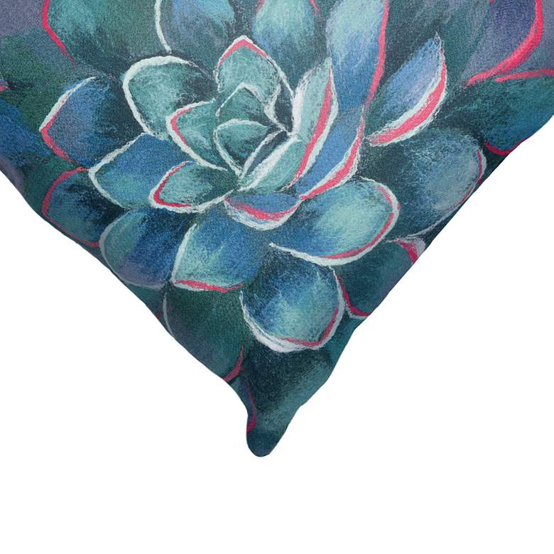 - Blue succulent pattern printed on 100 percent polyester pillow front.