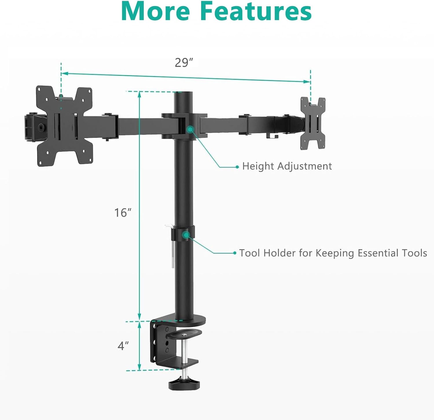 - Package Includes: 1 x WALI Dual Monitor Mount (Black), Mounting Hardware Kit, User Manual, experienced and friendly US based customer support available to assist 7 days a week