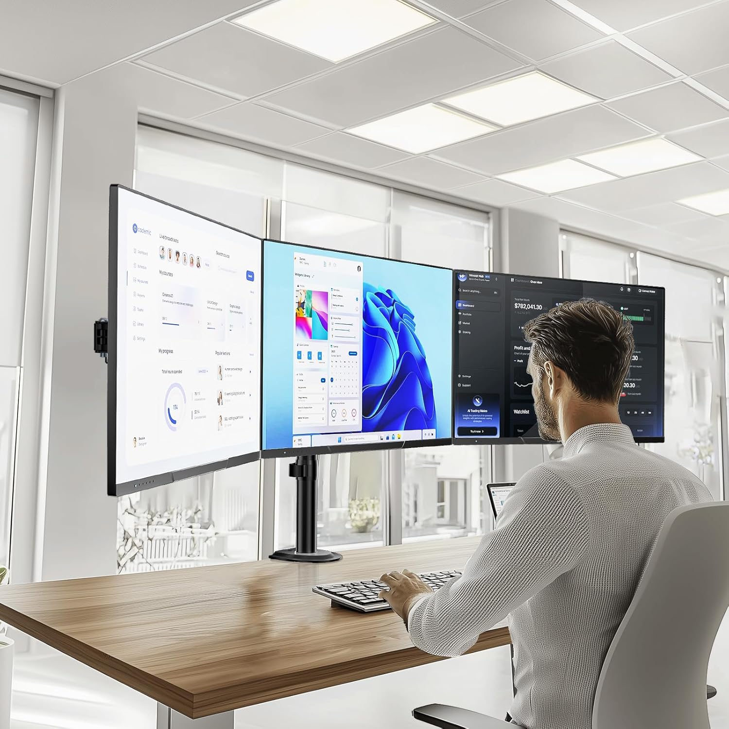 - Package Includes: WALI triple monitor arm desk mount x1, Mounting hardware kit, User manual, experienced and friendly US based customer support available to assist 7 days a week.
