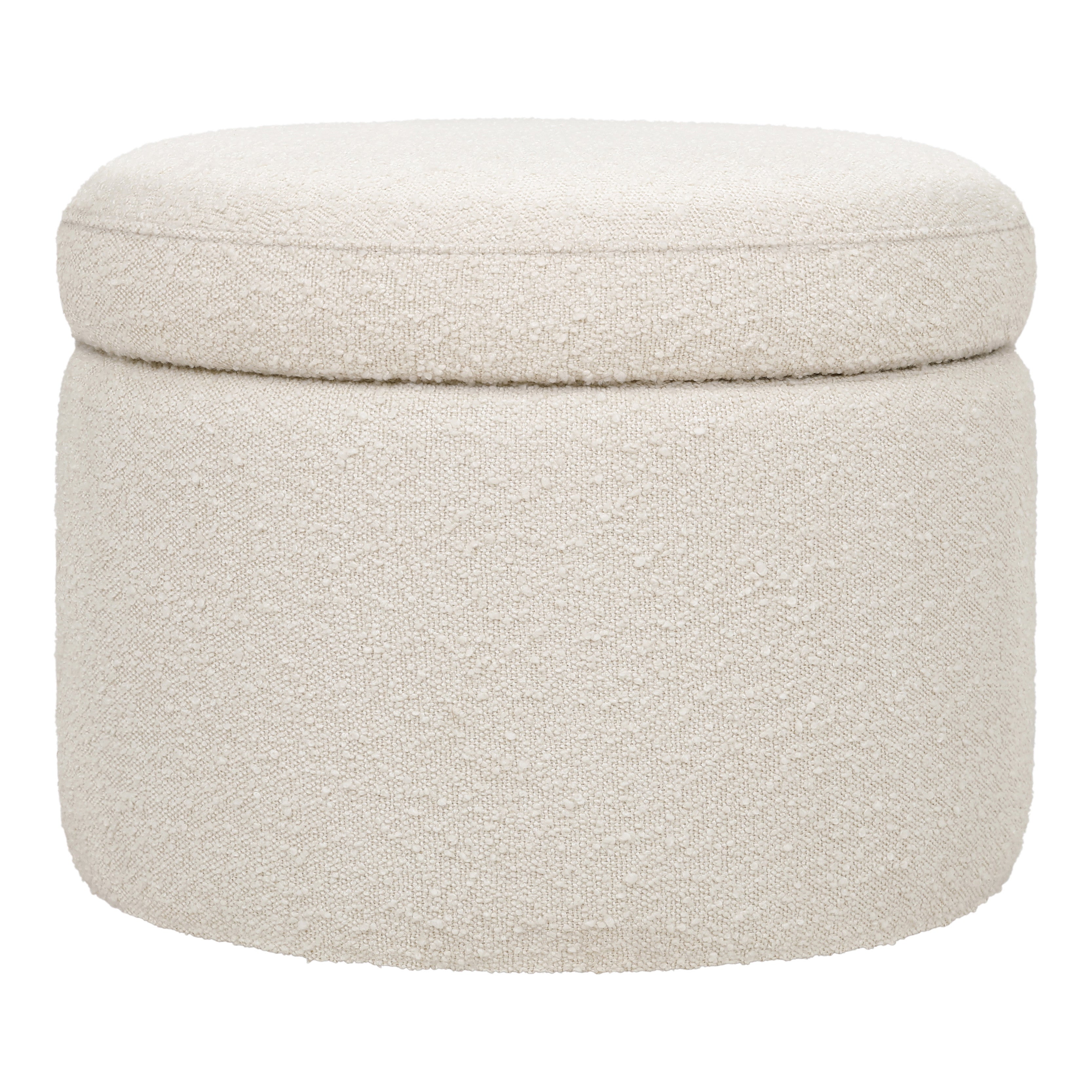 Designed to pair perfectly with the Wally Swivel Glider for a sophisticated look. There's no such thing as too much storage space! The Wally Storage Ottoman offers a smart, stylish and relaxing storage solution for your nursery. Upholstered by hand in our texture-rich boucle fabric.