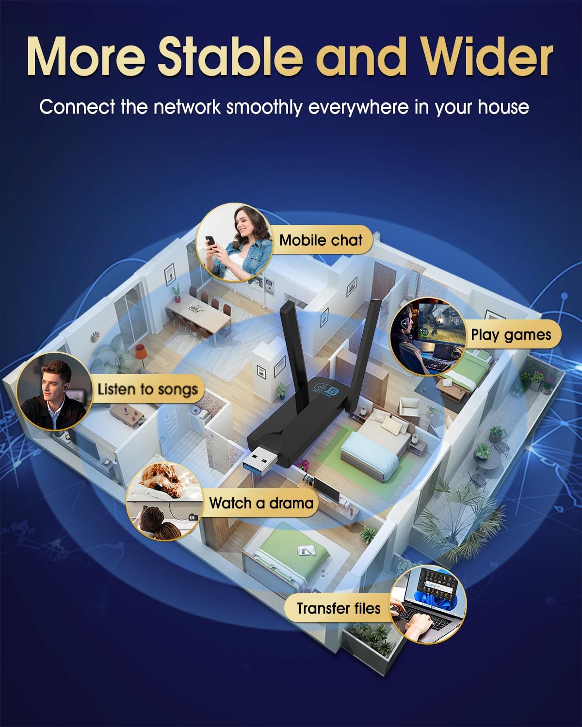 - 【Fast 1300Mbps USB WiFi Adapter】 - The Nilone USB 3.0 WiFi adapter delivers long-range, lag-free, and stable wireless connections. Upgrade your PC or laptop to the 802.11ac standard, which is three times faster than built-in wireless adapters.